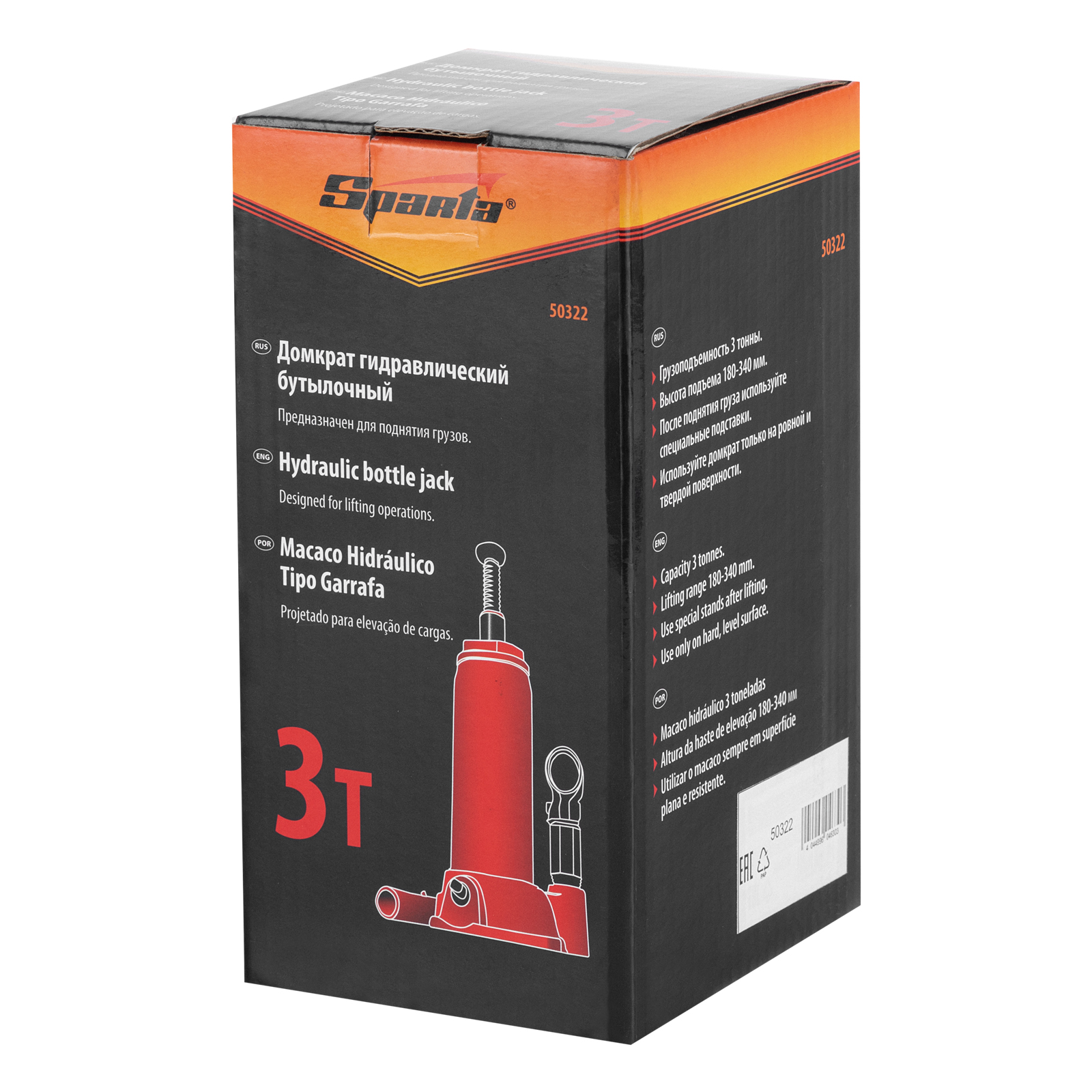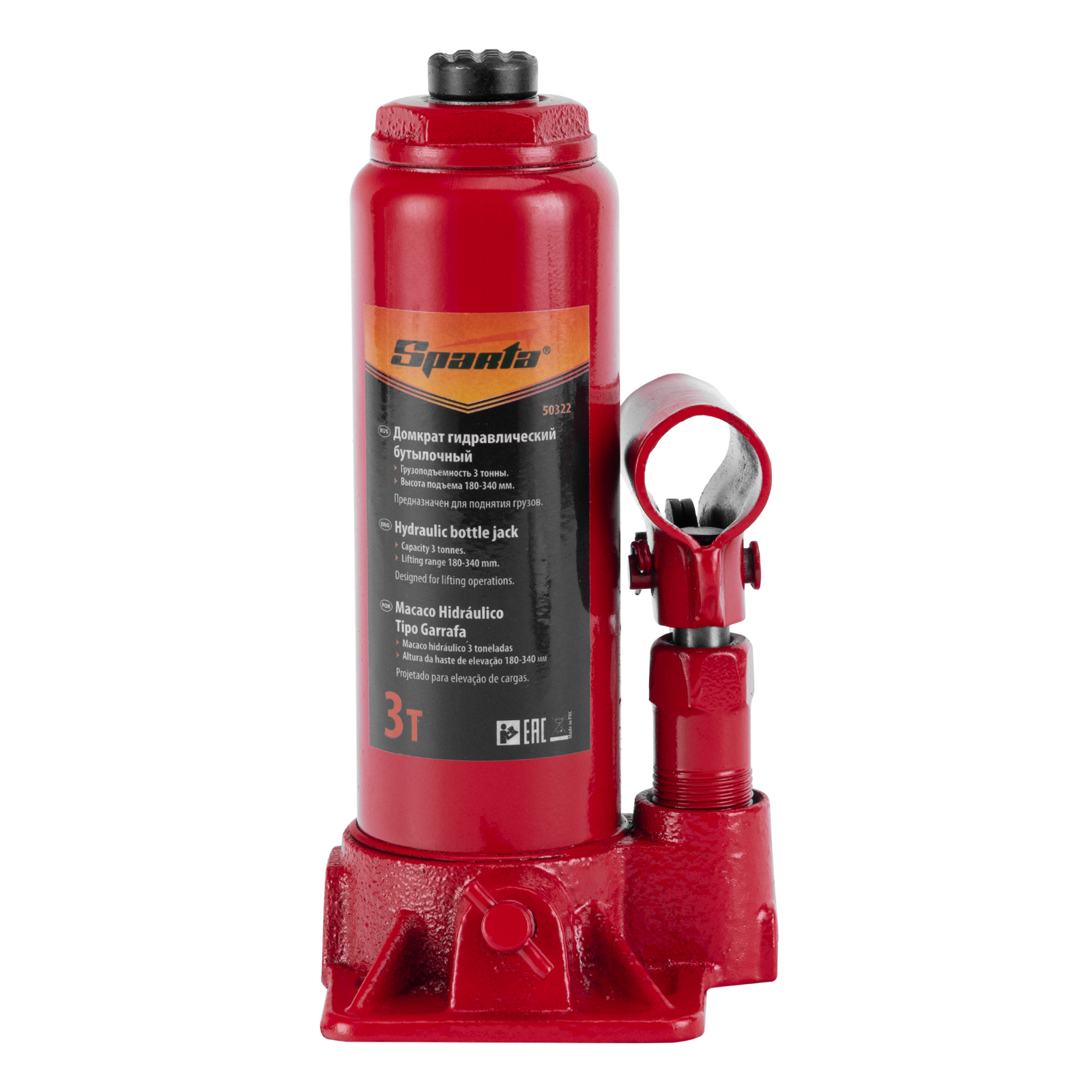 Домкрат гидравлический бутылочный, 3т, h подъема 180-340 мм Sparta в Челябинске