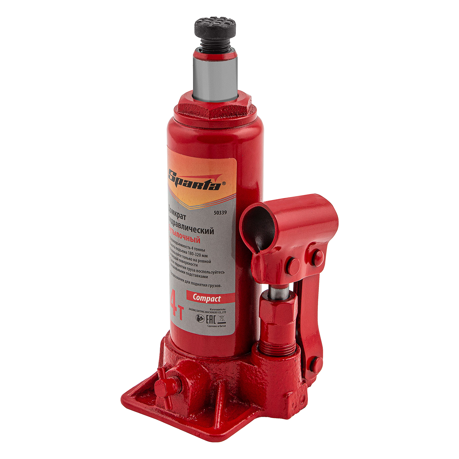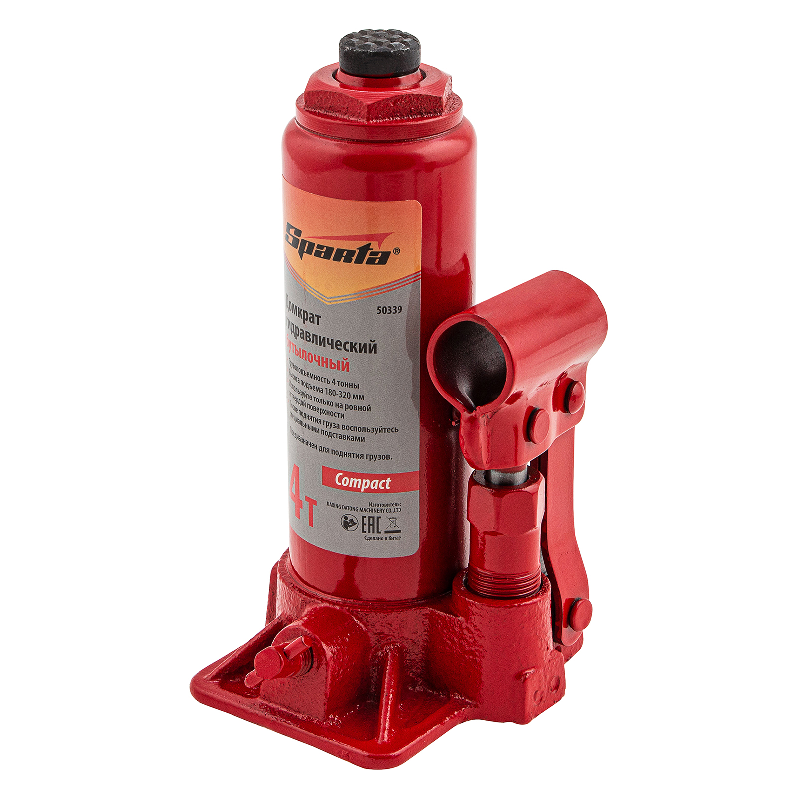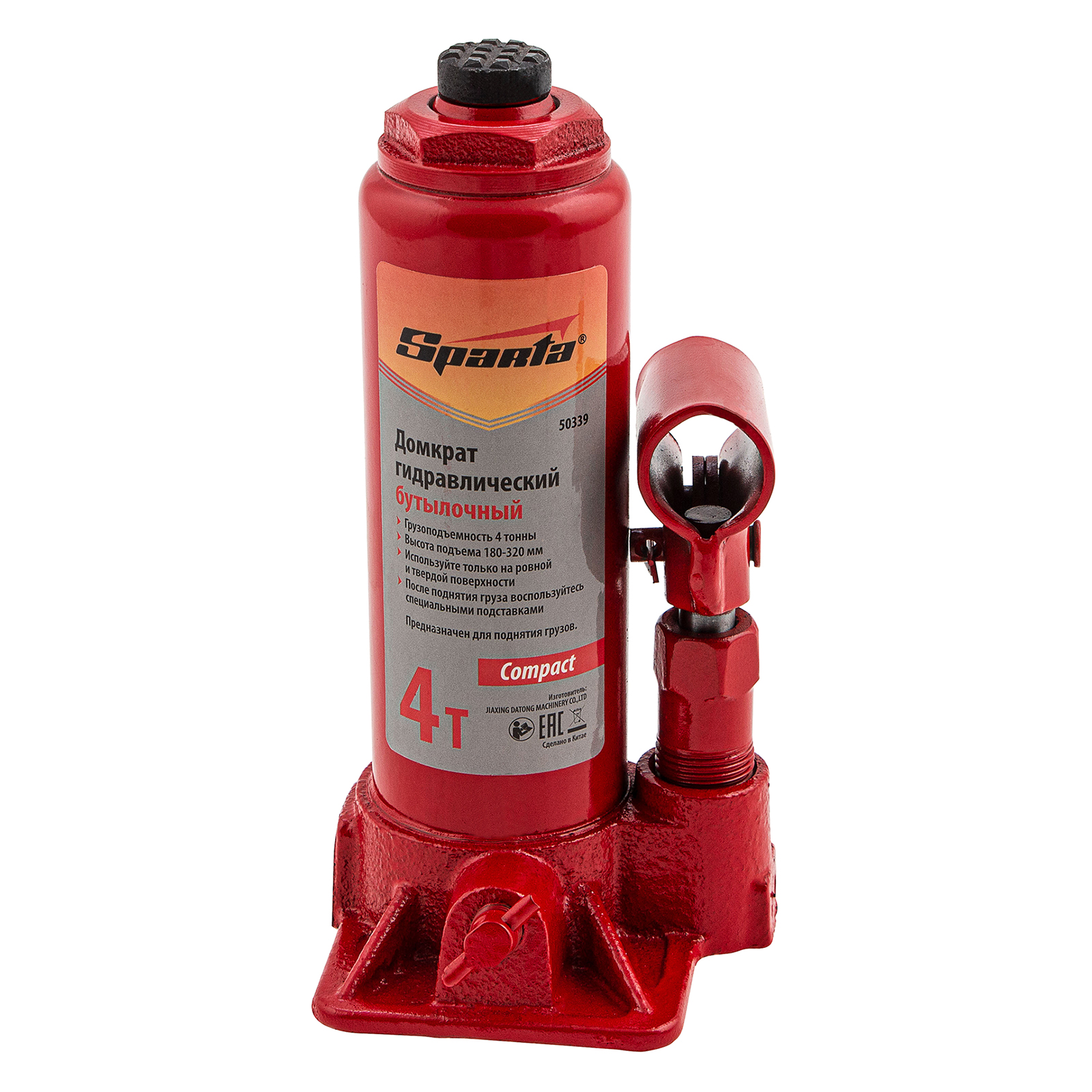 Домкрат гидравлический бутылочный, 4 т, h подъема 180–320 мм Sparta Compact в Челябинске