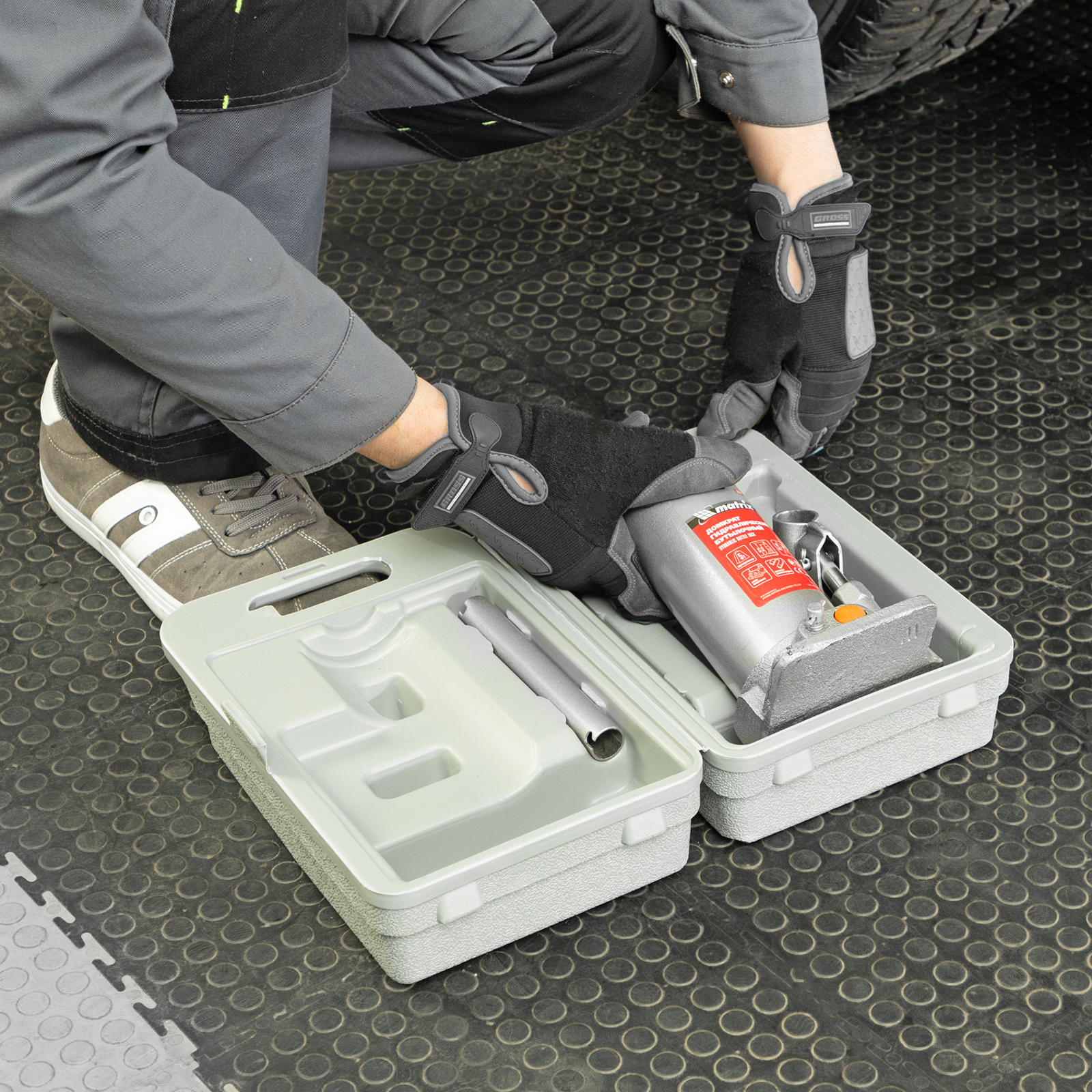 - Удобная транспортировка — домкрат комплектуется прочным пластиковым кейсом.