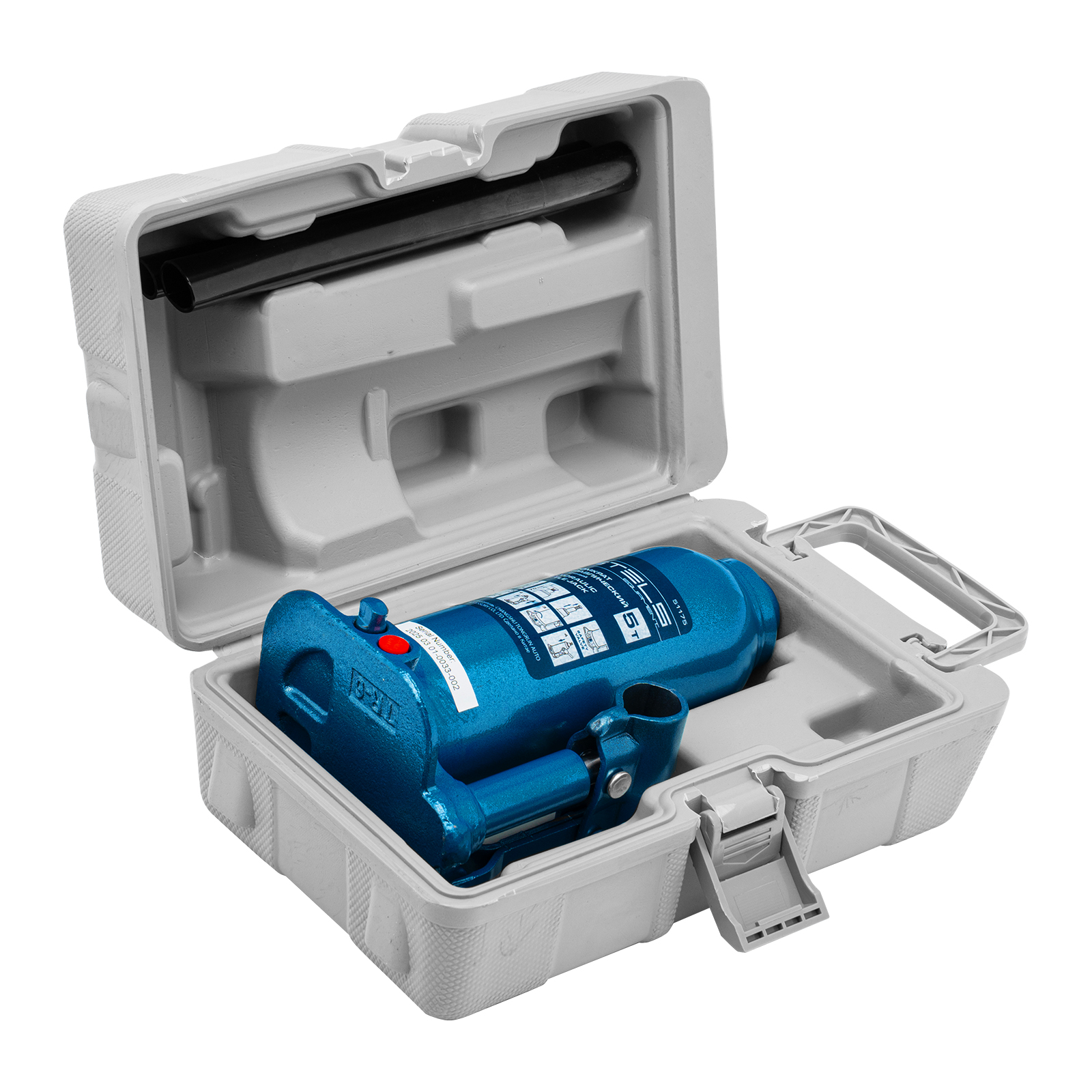 - Удобное хранение и транспортировка — домкрат поставляется в пластиковом кейсе.