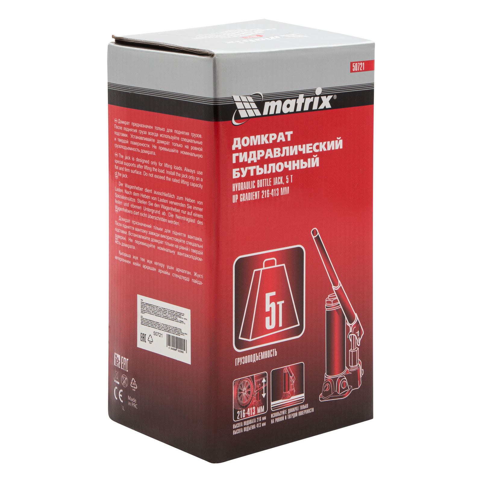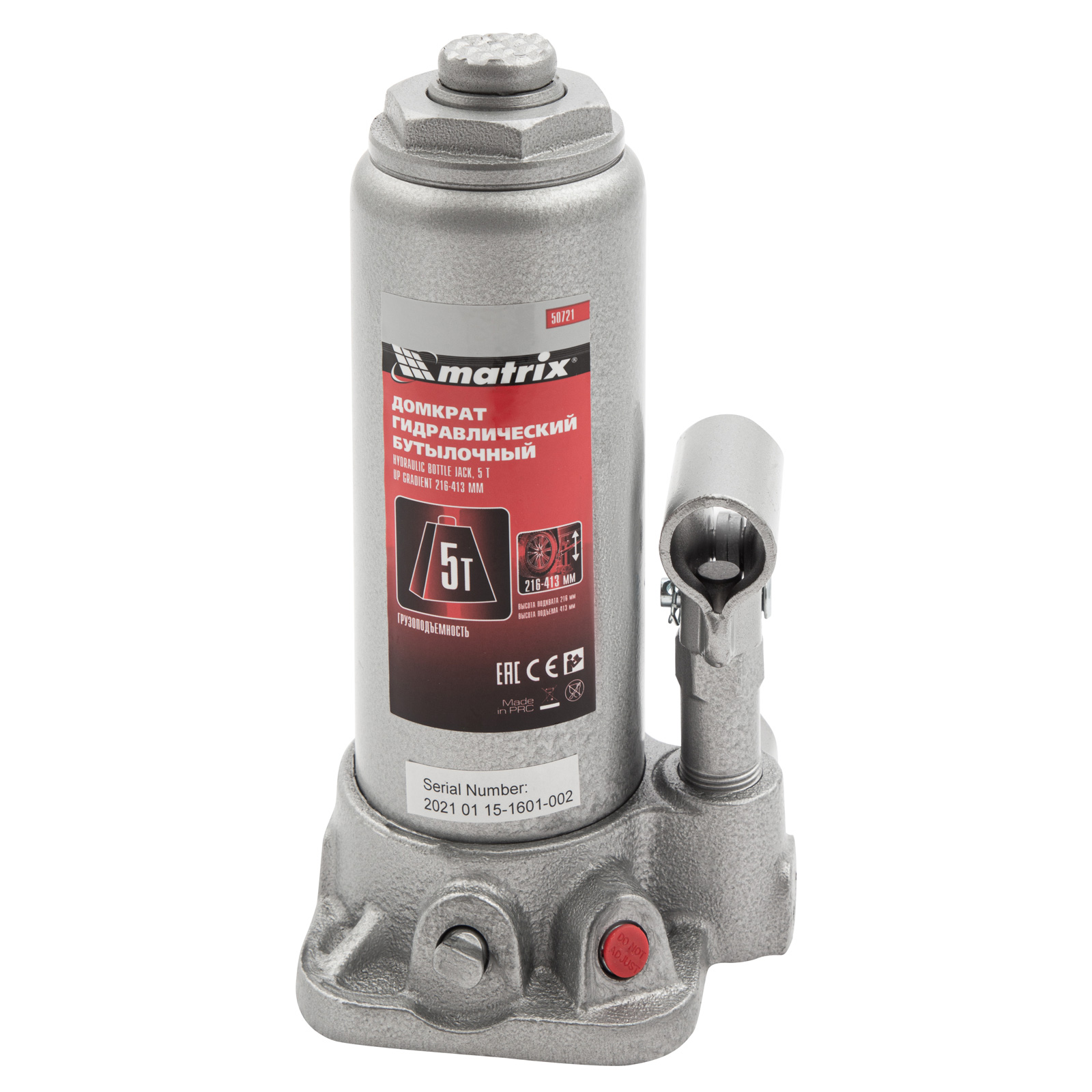 Домкрат гидравлический бутылочный, 5 т, высота подъема 216-413 мм Matrix в Челябинске