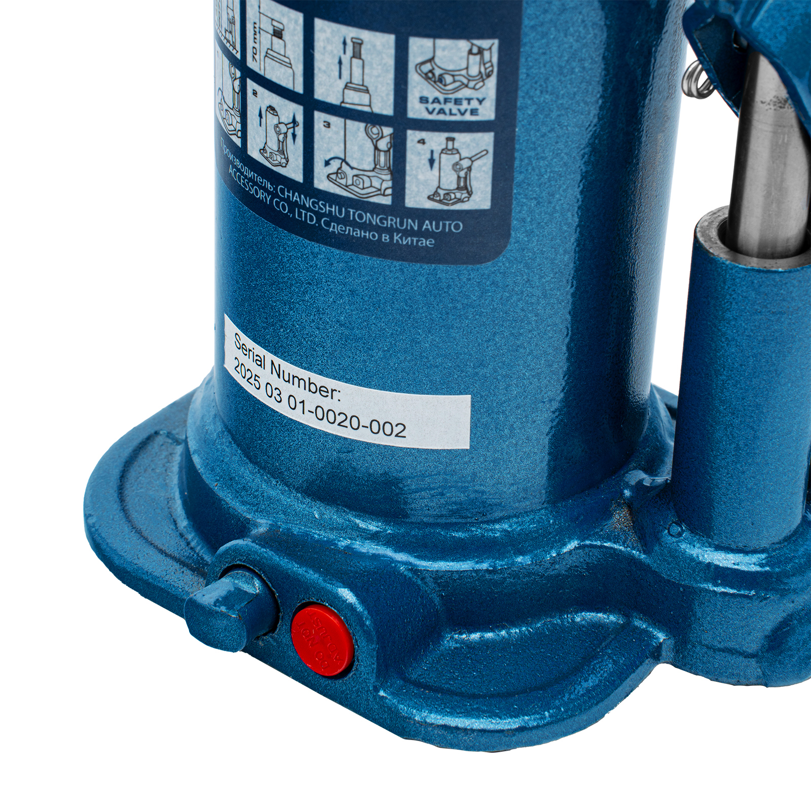 - Безопасная эксплуатация — благодаря предохранительному клапану домкрат не поднимает грузы тяжелее 6000 кг.