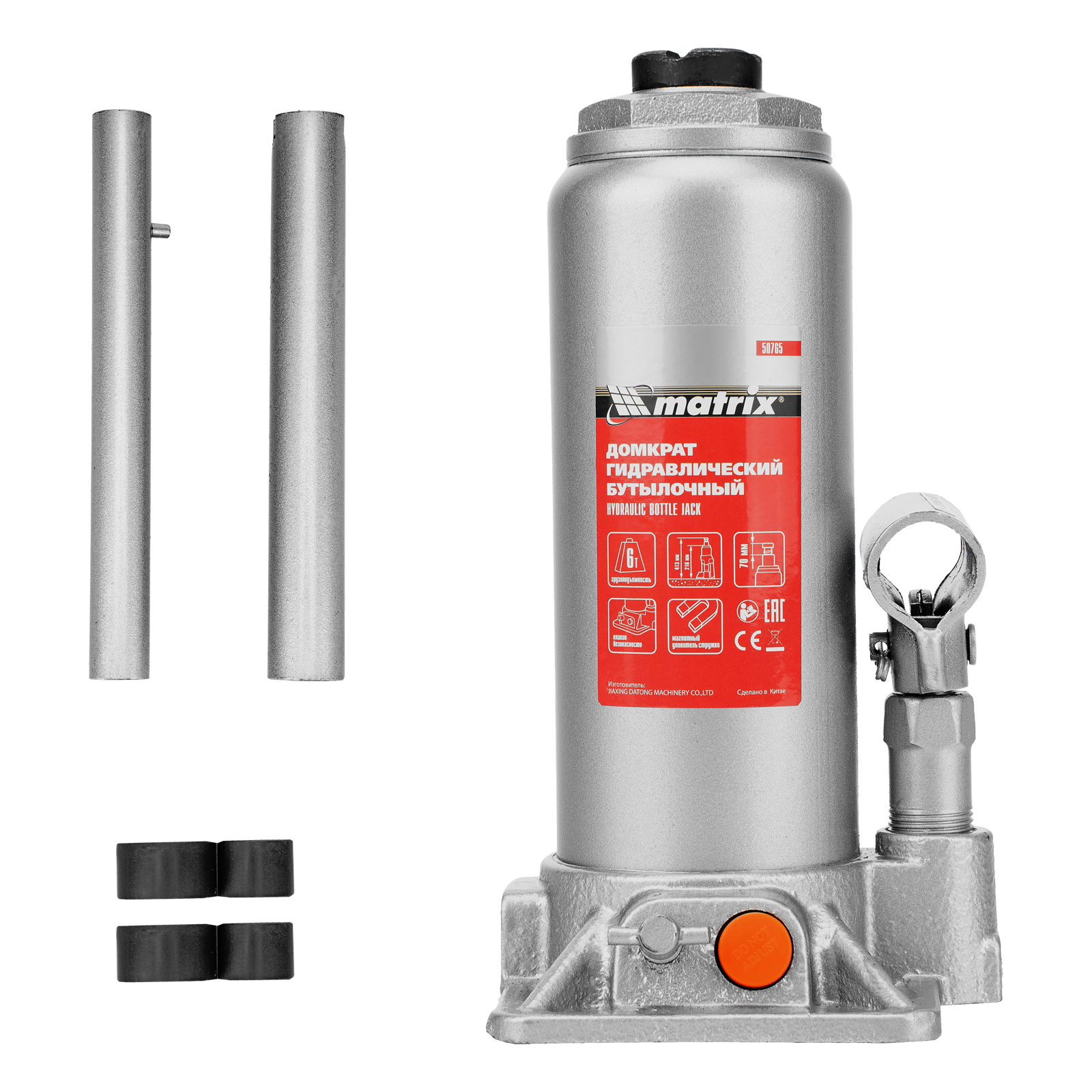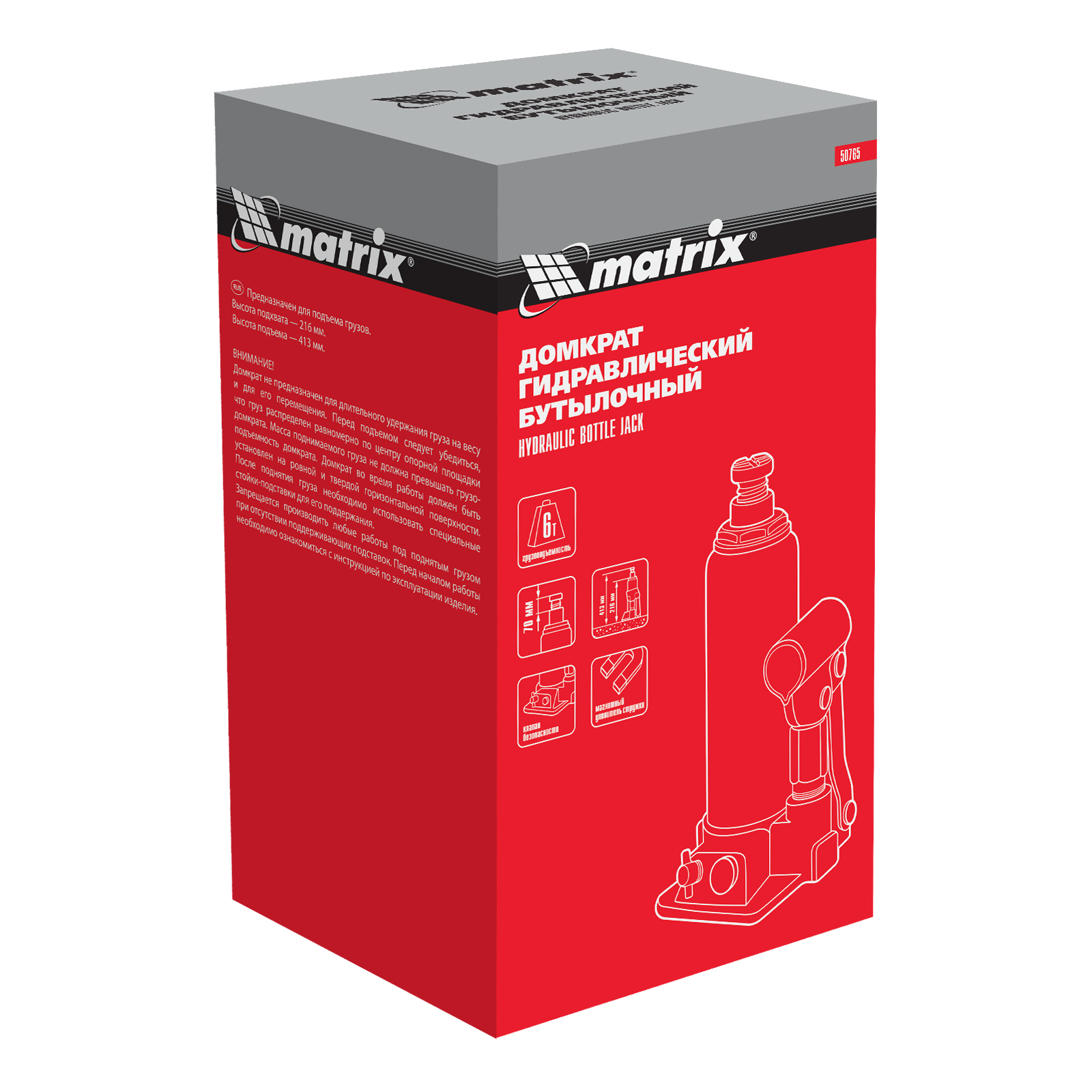 Домкрат гидравлический бутылочный, 6 т, h подъема 216-413 мм Matrix в Челябинске