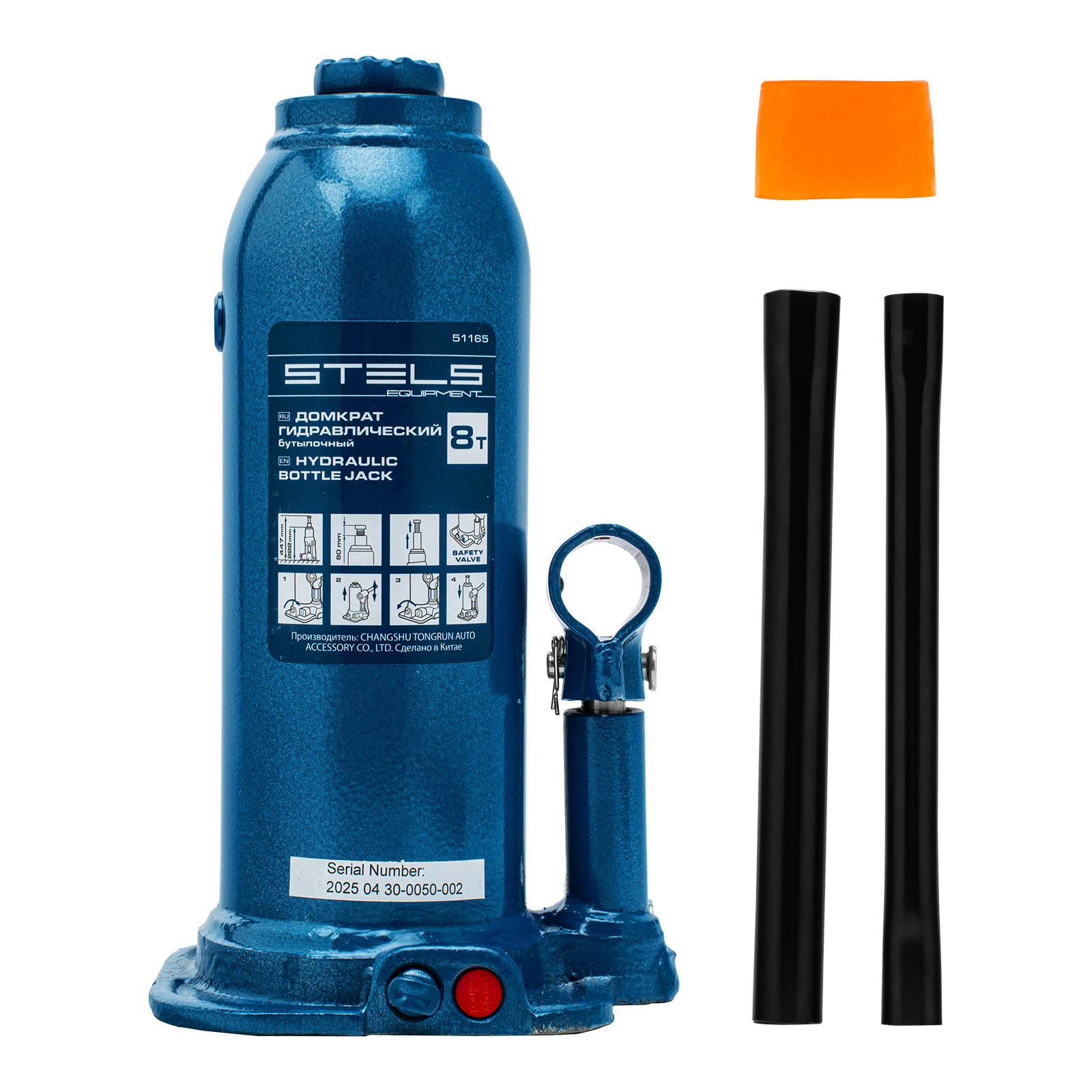 - Безопасная эксплуатация — благодаря предохранительному клапану домкрат не поднимает грузы тяжелее 8000 кг.