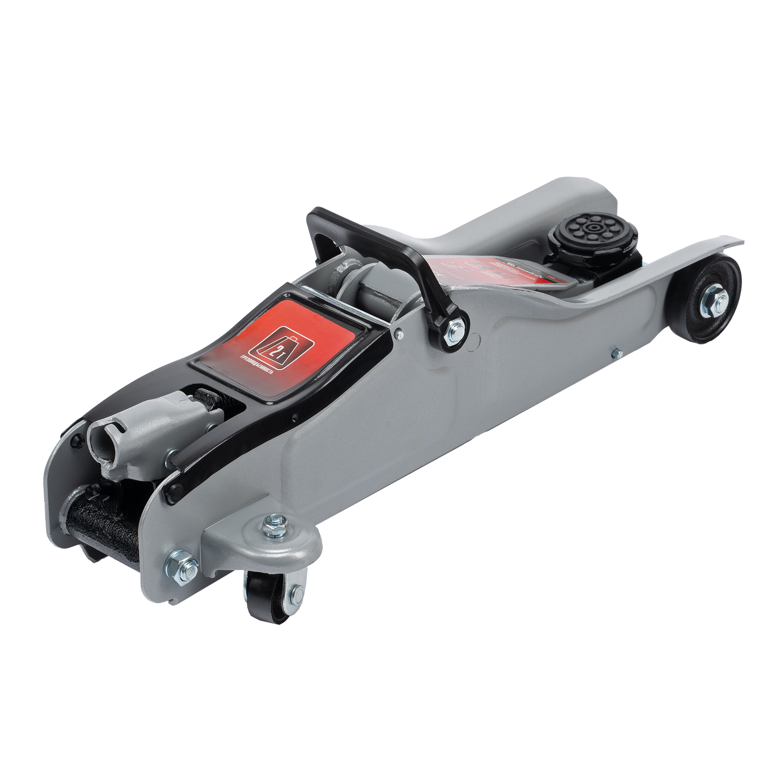 - Безопасная эксплуатация — предохранительный клапан препятствует подъему груза массой более 2 т, предотвращая поломку домкрата.