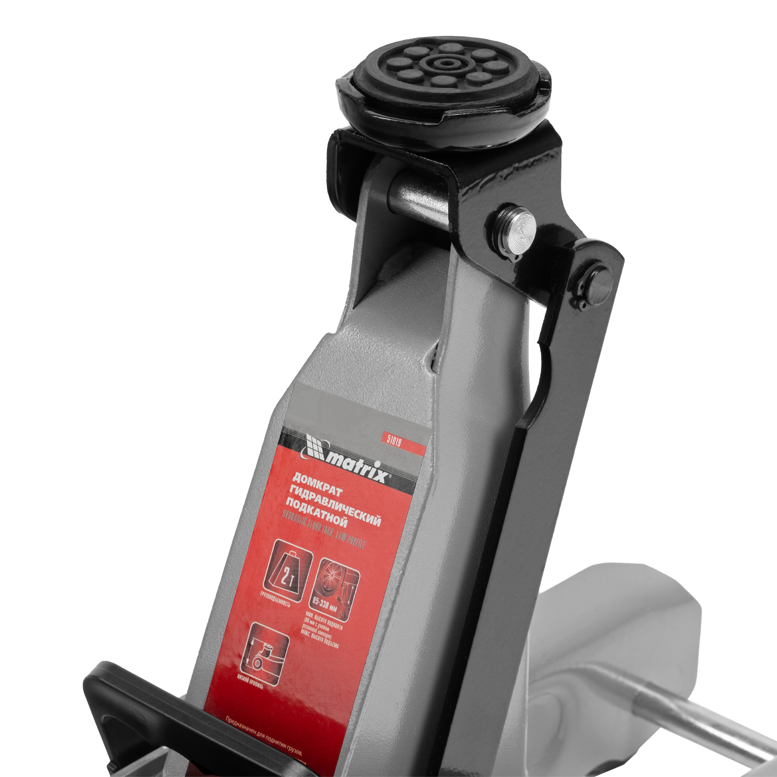 Подкатной гидравлический домкрат Matrix Low Profile 51019 с высотой подхвата 85 мм, поставляющийся в пластиковом кейсе, — полупрофессиональное гаражное оборудование, способное поднимать груз массой до 2 т на высоту до 330 мм. Очень маленькая высота подхвата 85 мм позволяет использовать домкрат для автомашин с небольшим клиренсом. Домкрат будет полезен как в автомастерской, так и в частном гараже.