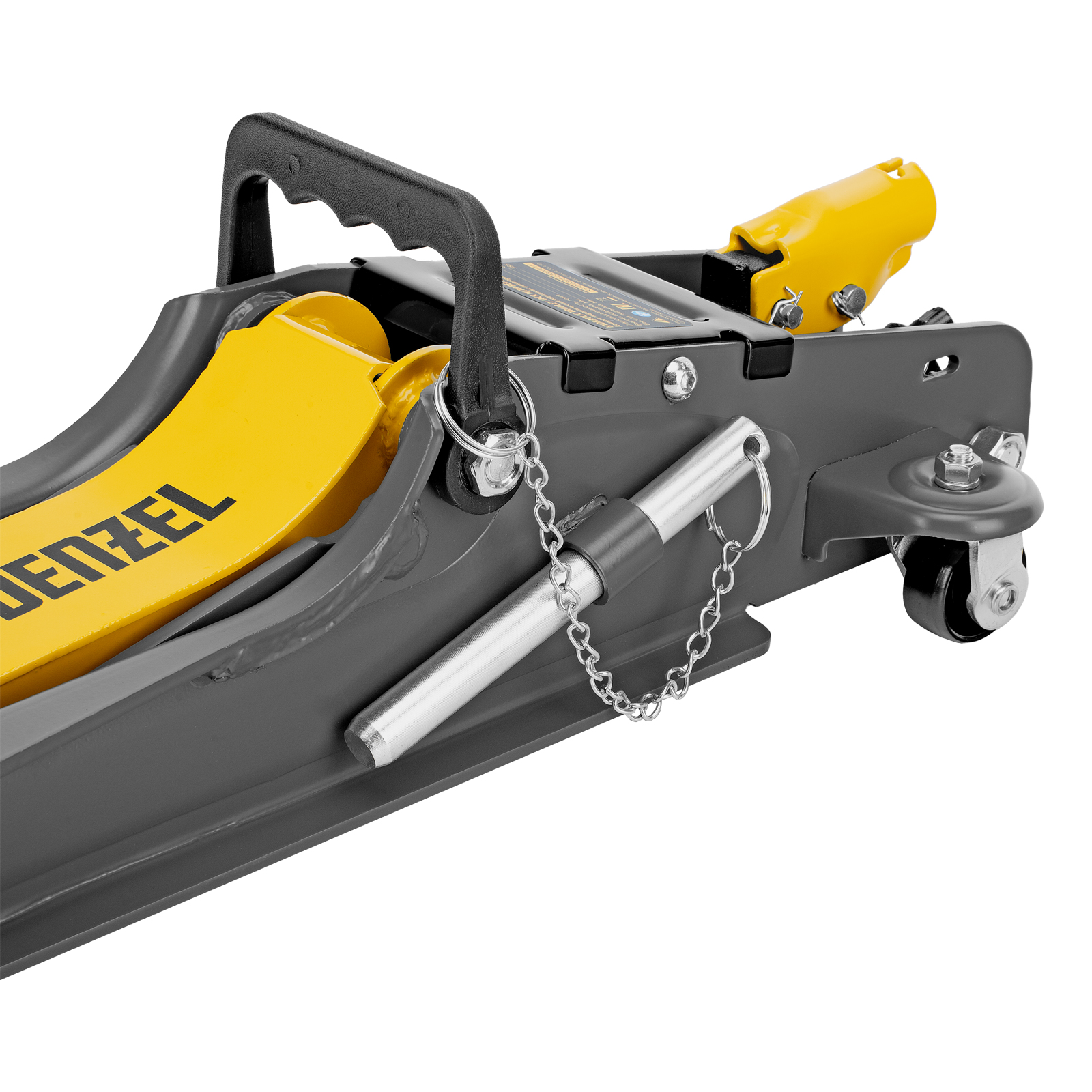 Гидравлический подкатной домкрат Denzel 51232 с фиксатором имеет высоту подхвата 85 мм и предназначен для плавного подъема грузов массой до 2,5 т на высоту до 385 мм. Страховочный штифт позволяет фиксировать подъемный рычаг на высоте 290 и 355 мм для безопасной работы. Домкрат пригодится владельцам легковых автомобилей с низким и стандартным клиренсом.