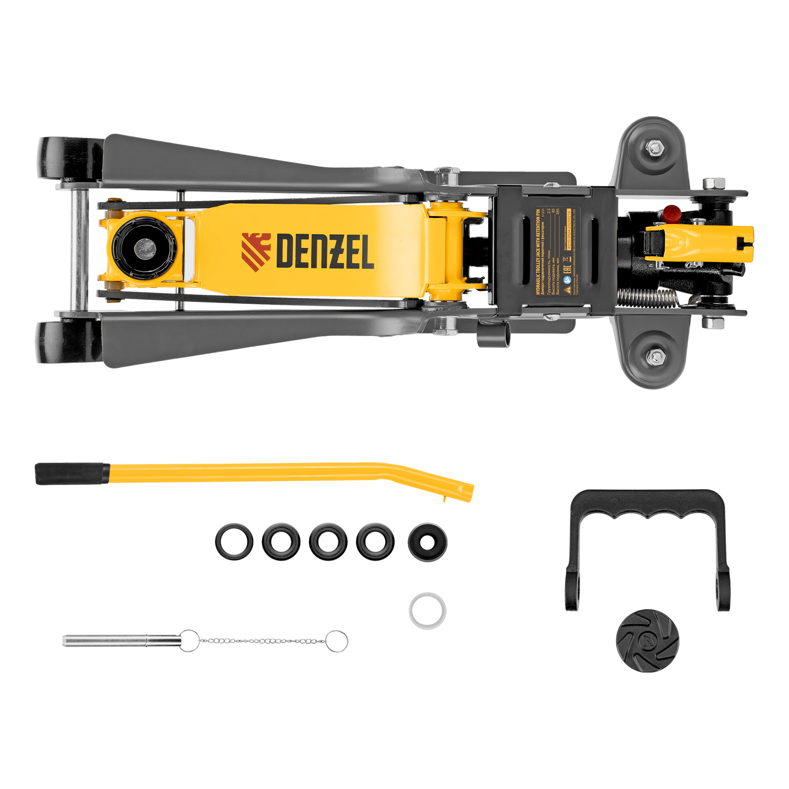 Домкрат гидравлический подкатной с фиксатором, 2,5 т, 85-385 мм Denzel в Челябинске