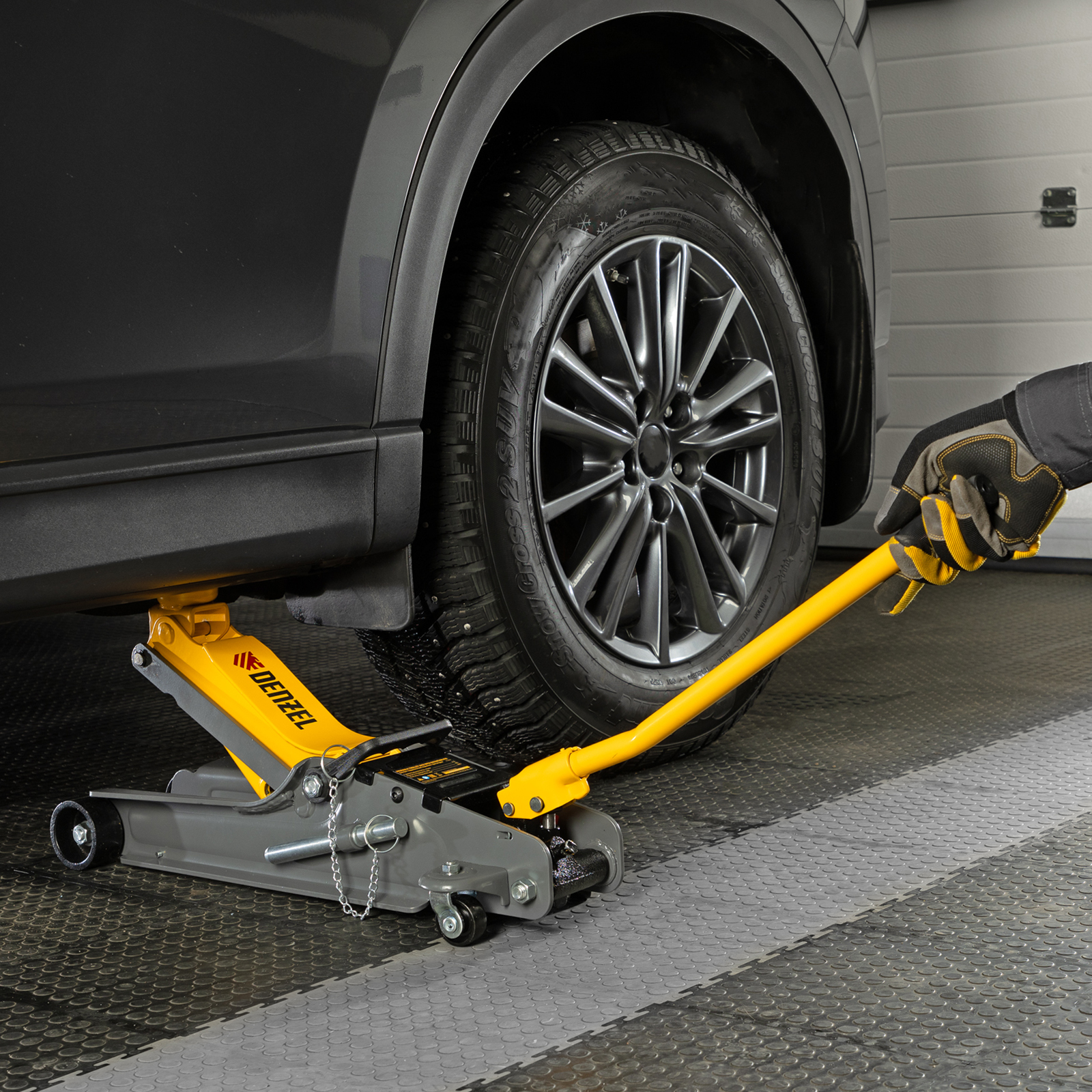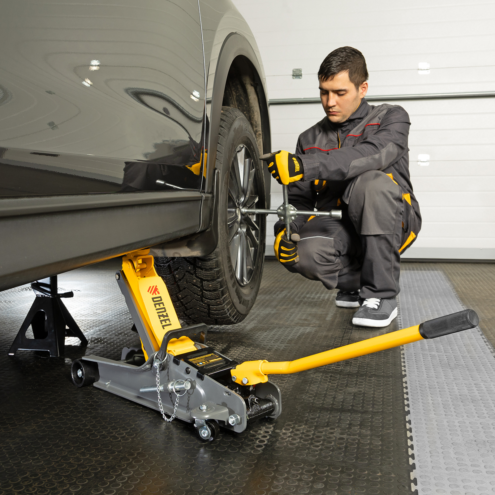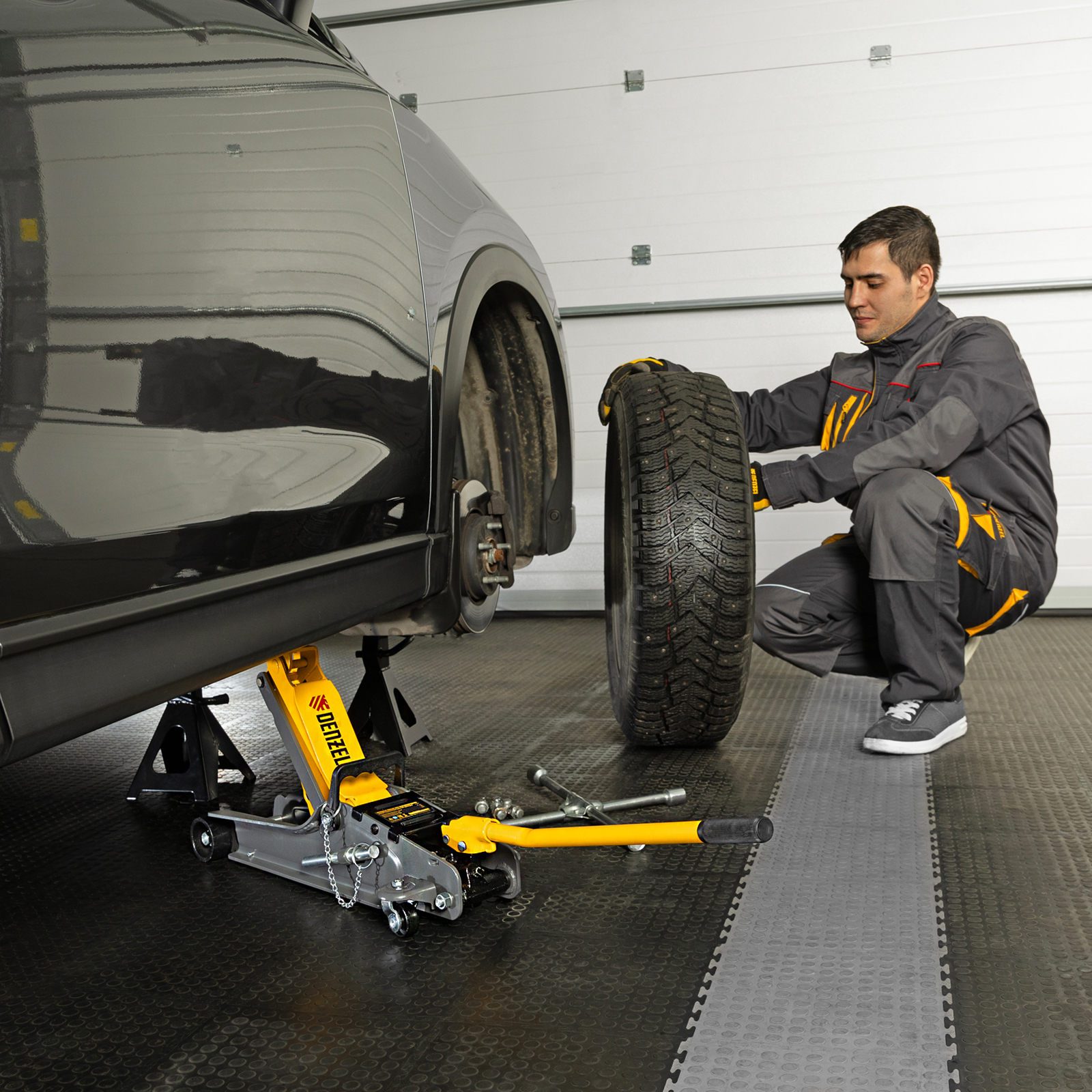 - Аккуратная работа — резиновая опора защищает днище автомобиля от нежелательных повреждений.
