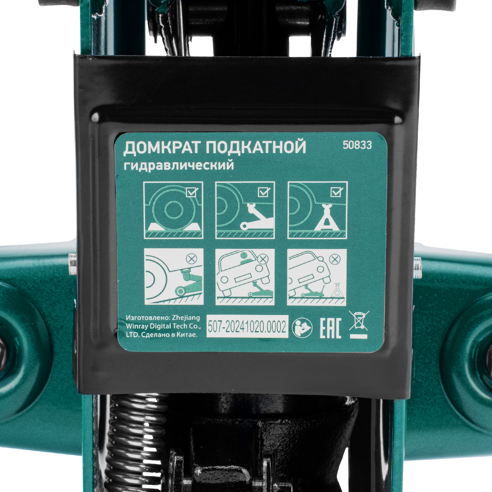 Гидравлический подкатной домкрат Сибртех 50833, поставляющийся в пластиковом кейсе, с высотой подхвата 127 мм, предназначен для подъема грузов массой до 2 т на высоту до 330 мм. Применяется для обслуживания автомобилей со стандартным клиренсом. Компактный домкрат подходит для самостоятельного использования автовладельцами.