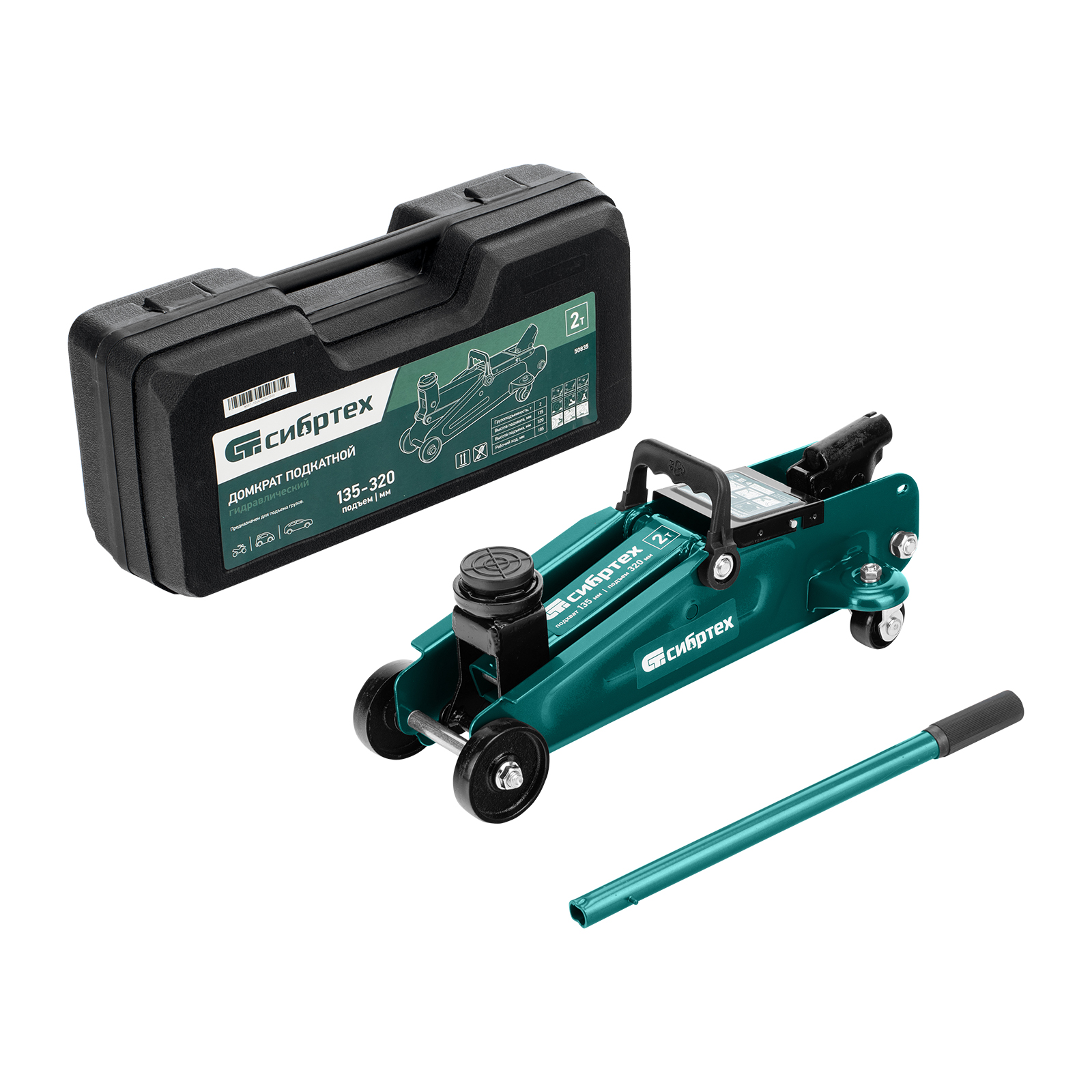 Домкрат гидравлический подкатной, 2 т, 135-320 мм, в пласт. кейсе Сибртех в Челябинске