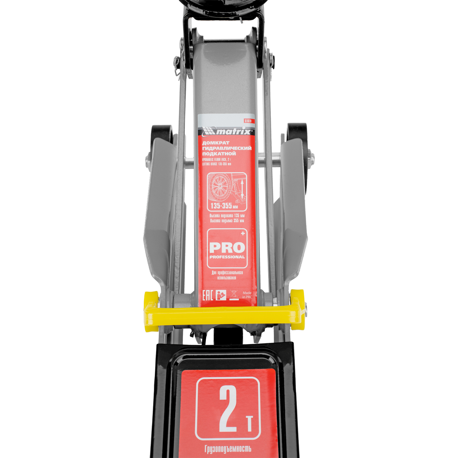 Домкрат гидравлический подкатной, 2 т, высота подъема 135-355 мм Matrix в Челябинске