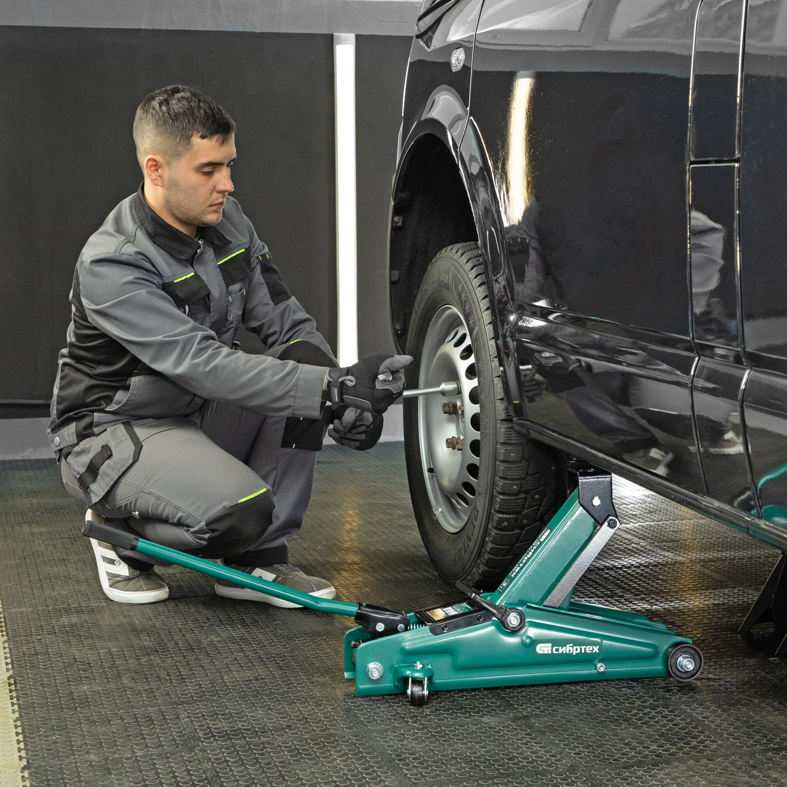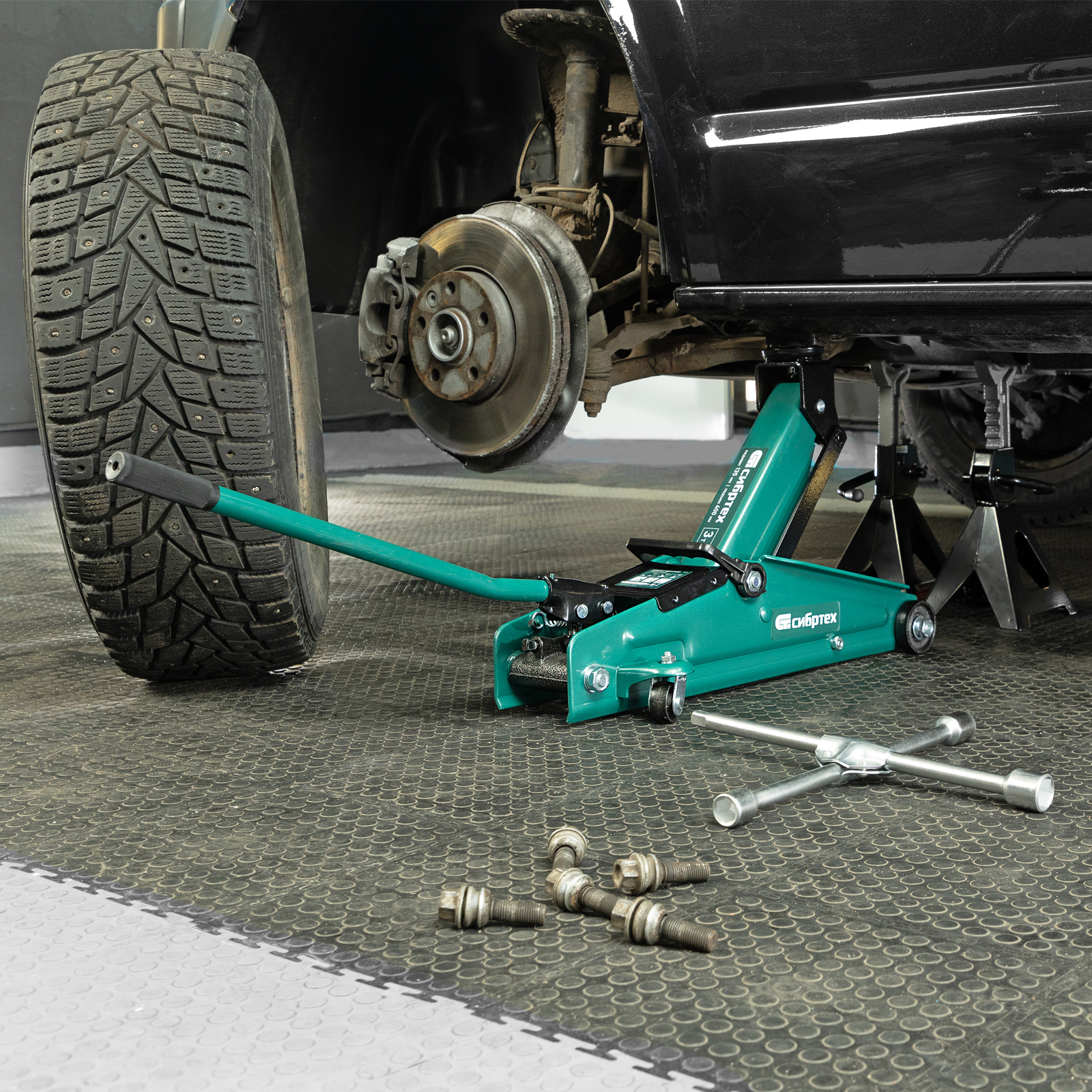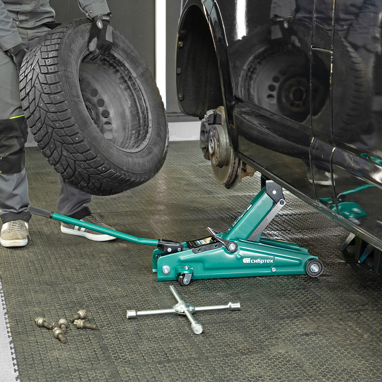 - Маневренность — благодаря поворотным колесам домкрат можно быстро подвести под груз.