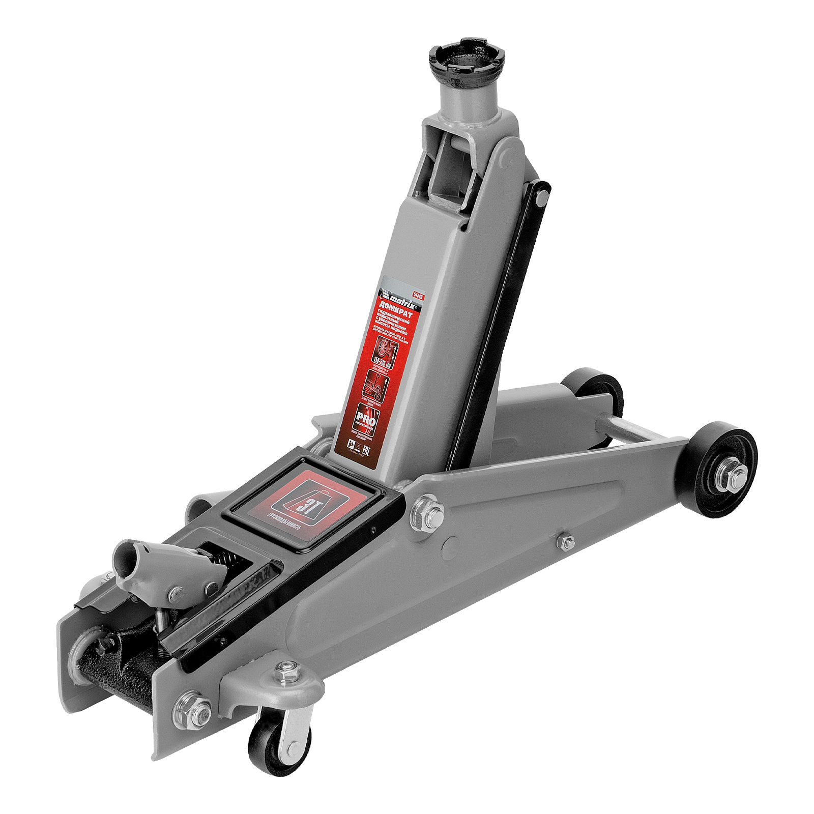 Домкрат гидравлический подкатной, 3 т, высота подъема 150-530 мм Matrix в Челябинске