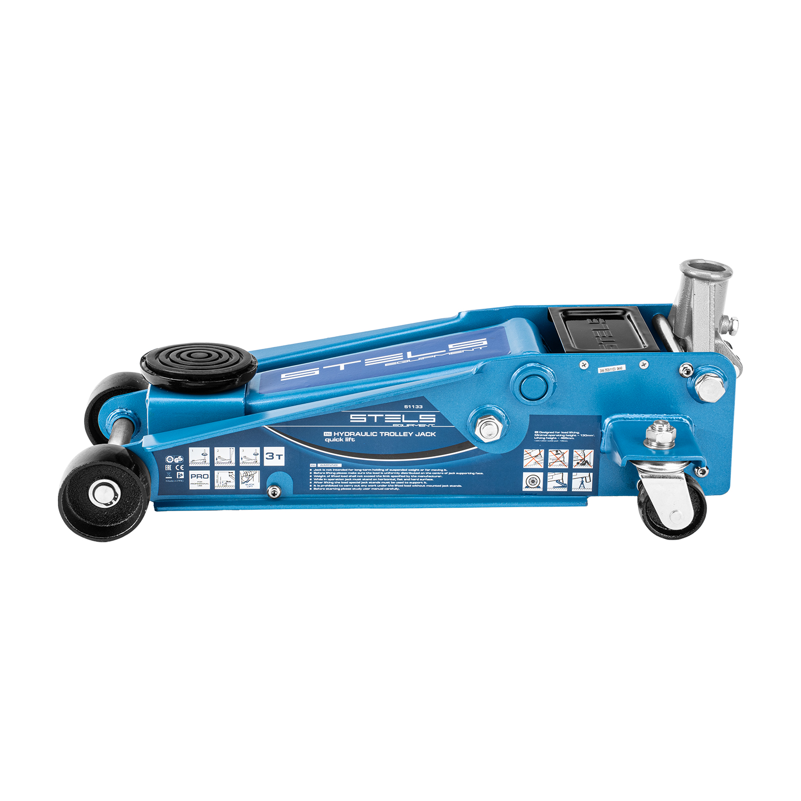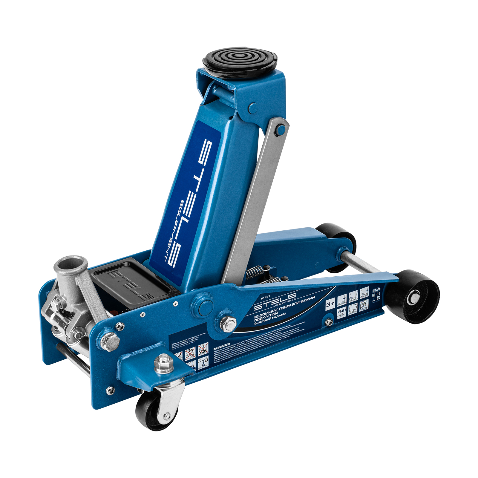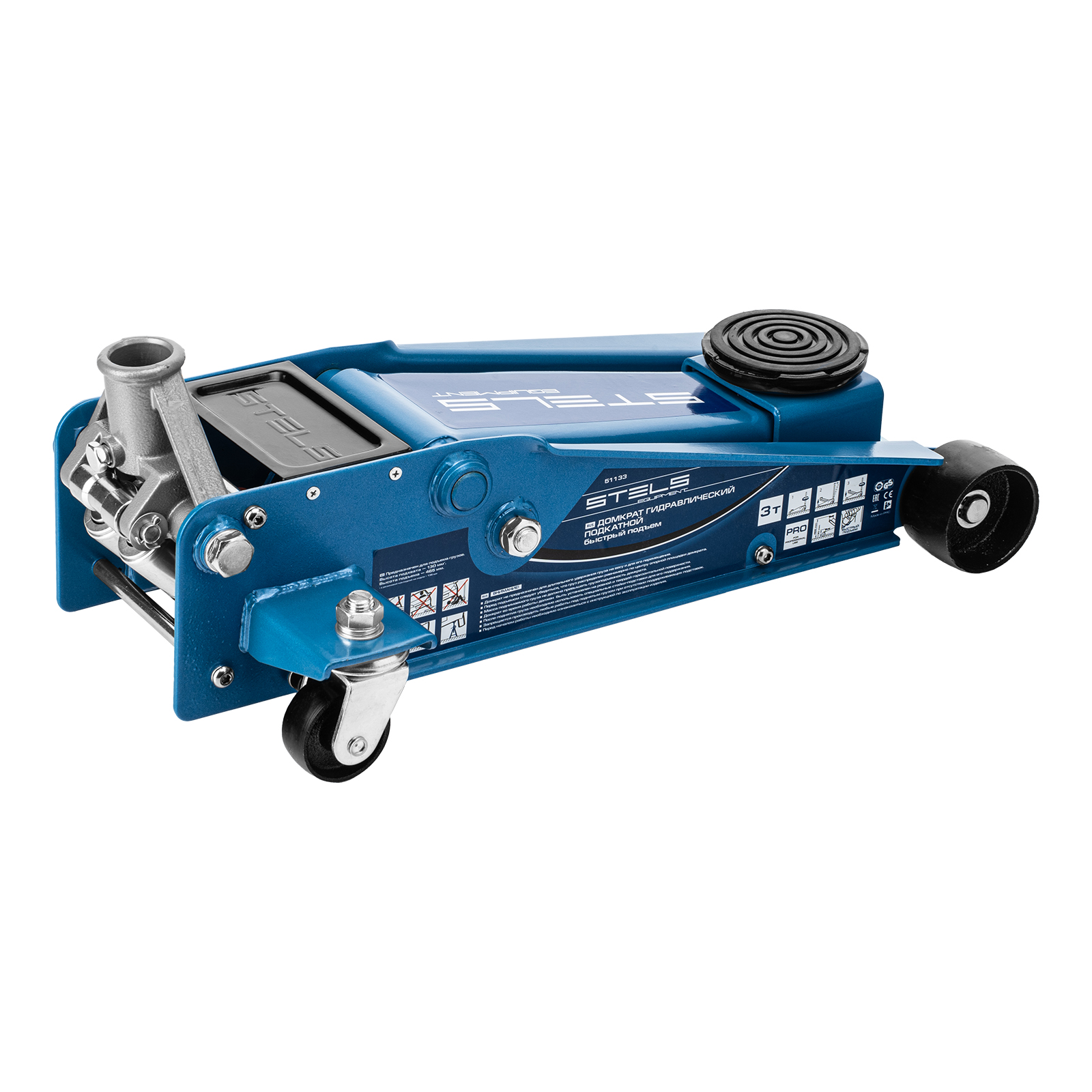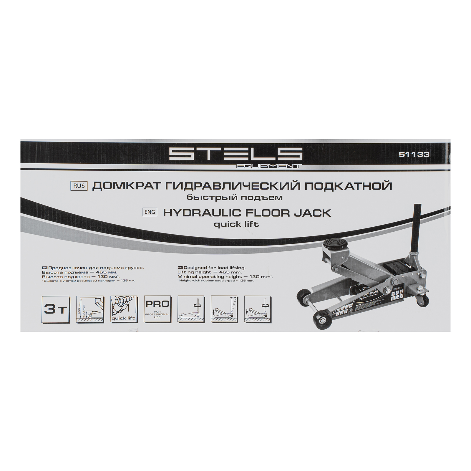 Профессиональный подкатной гидравлический домкрат Stels QUICK LIFT 51133 используется для быстрого подъема на высоту 130-465 мм всех типов автомобилей со стандартным клиренсом и массой до 3 тонн. Благодаря системе QUICK LIFT для достижения предельной высоты достаточно 7 качков рукоятки. Домкрат подходит для использования на станциях техобслуживания и шиномонтажа.