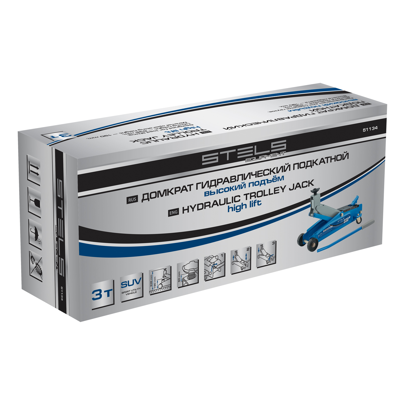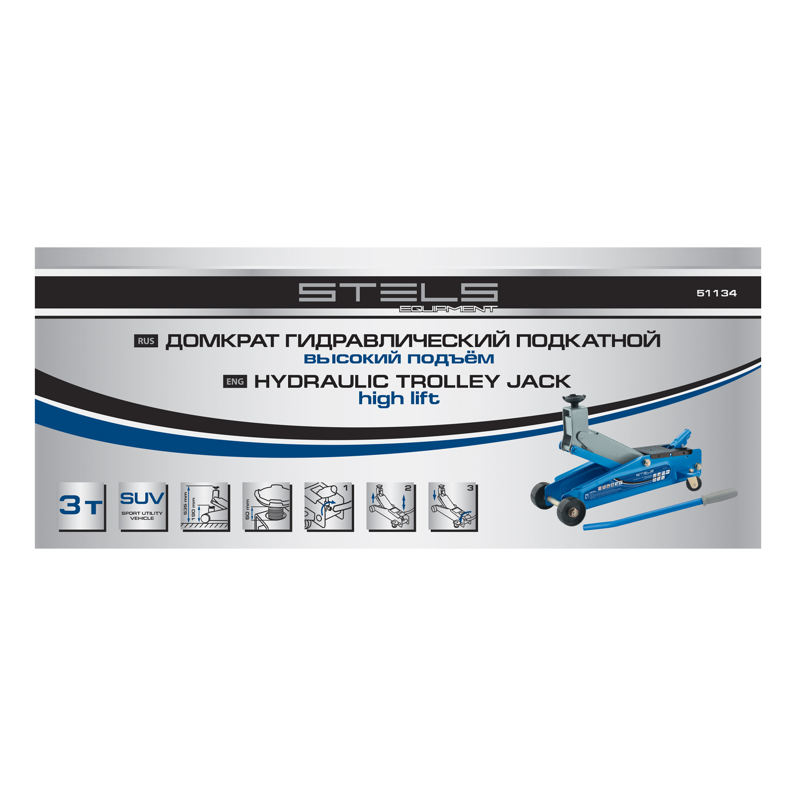 Домкрат гидравлический подкатной, высокий подъем, 3т, SUV, 190-535 мм Stels в Челябинске