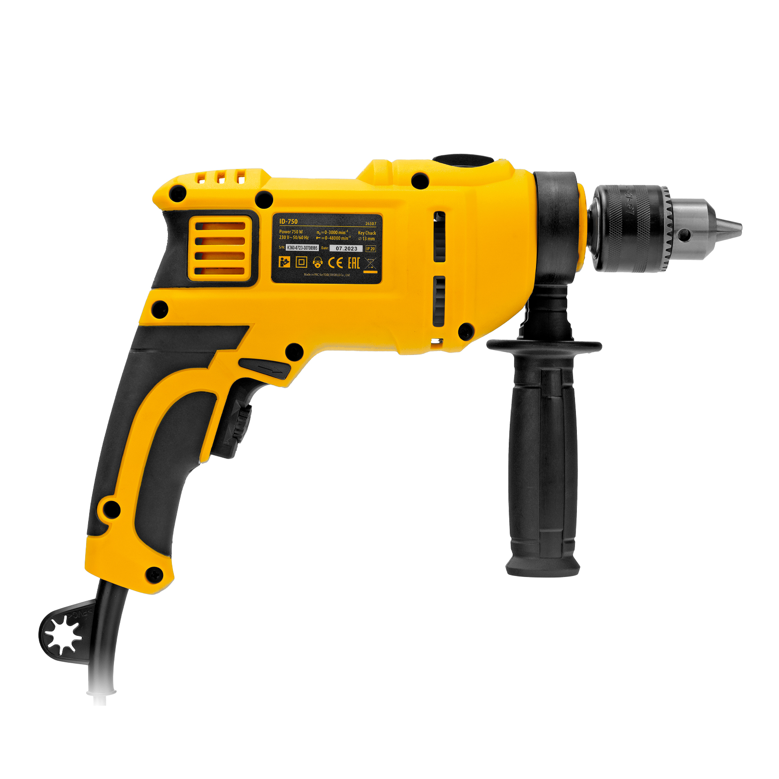 Ударная дрель Denzel ID-750 26307 мощностью 750 Вт поддерживает скорость вращения оснастки 0-3000 об/мин и частоту ударов 48000 уд/мин. Используется для ручного или ударного сверления металла, древесины, легкого бетона, кирпича, плитки или пластика. Сверлит отверстия диаметром до 25 мм в древесине, до 13 мм в бетоне и до 13 мм в металле. Эффективное сверление твердых материалов обеспечивает массивный промщит ударного механизма. Дрель работает со сверлами с диаметром хвостовика 1,5-13 мм, что позволяет эффективно решать различные задачи.