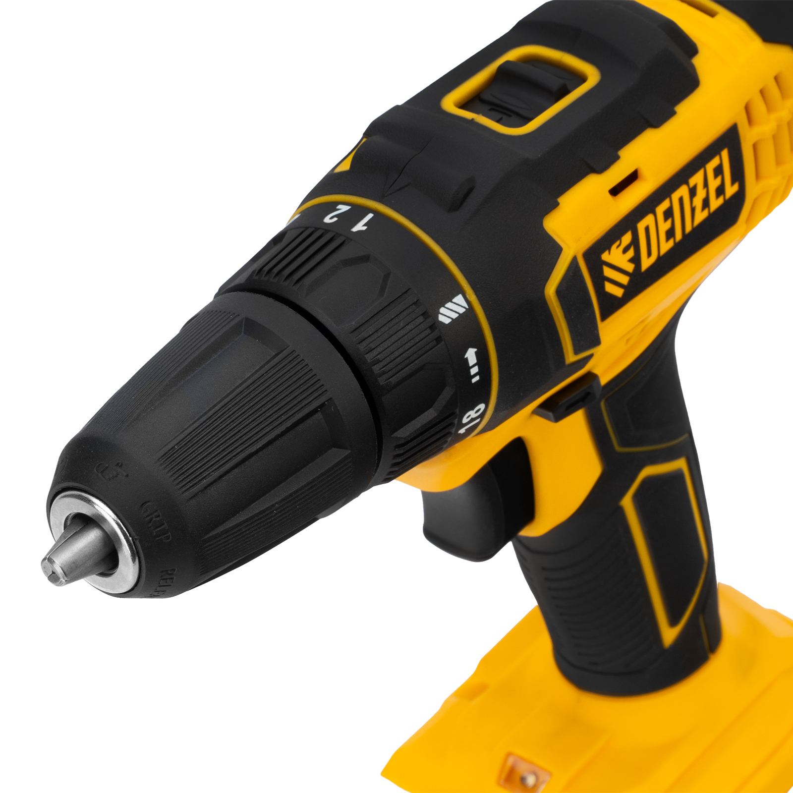 - Универсальность — дрель-шуруповерт совместима с любым Li-Ion аккумулятором единой платформы Denzel Battery System 18V.