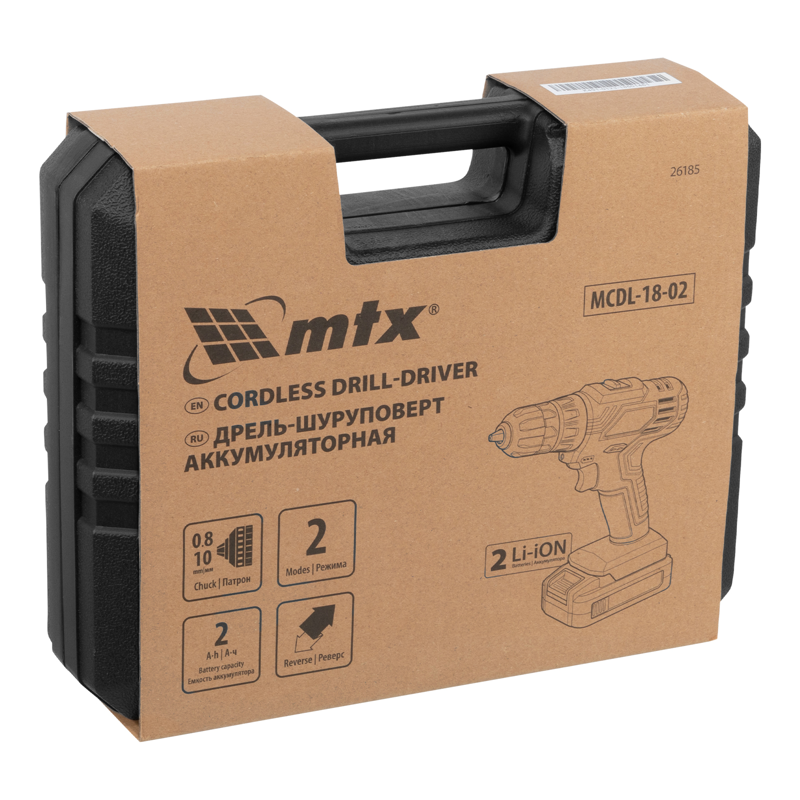 Дрель-шуруповерт аккумуляторная MCDL-18-02, Li-Ion, 18 В, 2 акк. MTX в Челябинске