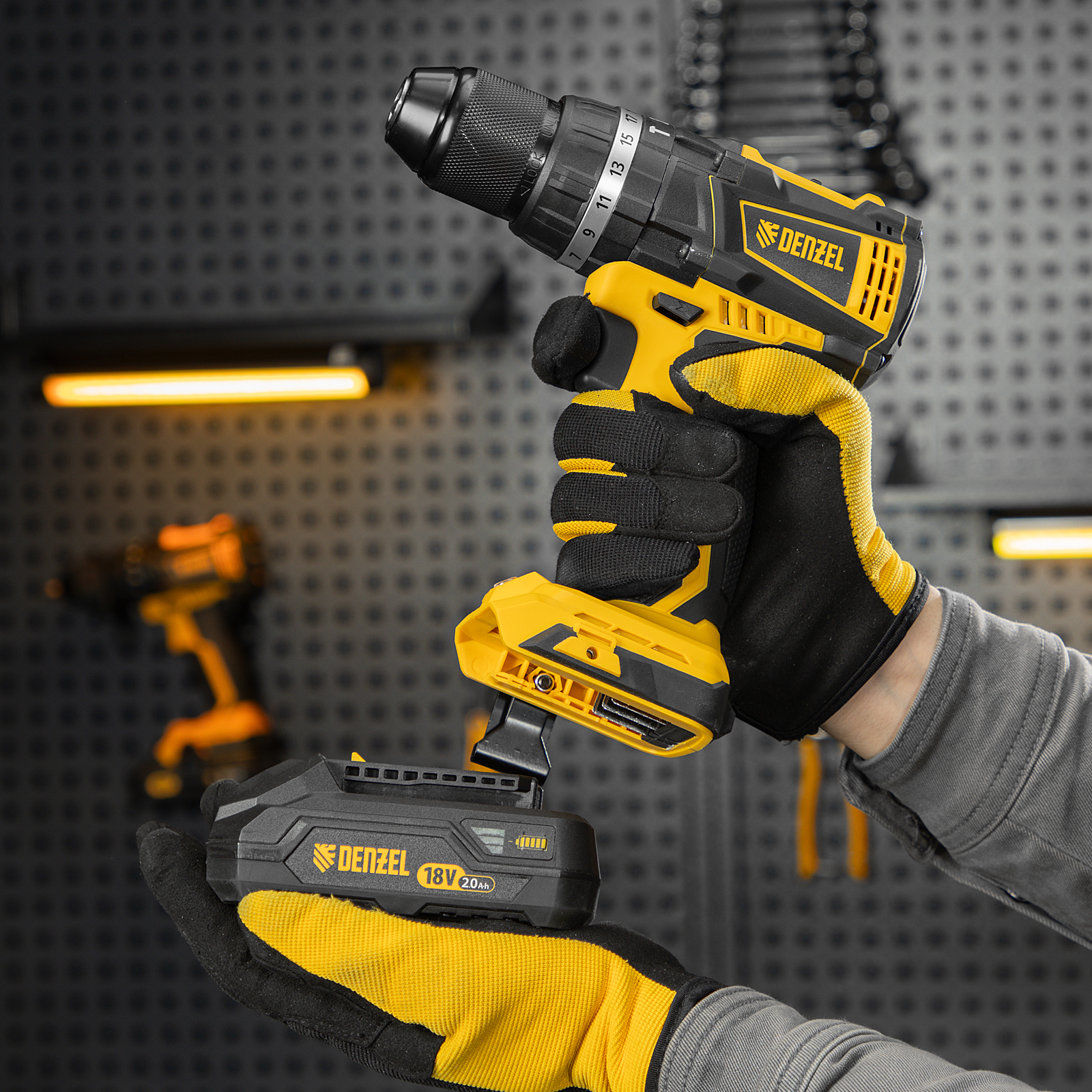 - Универсальность — аккумуляторы совместимы со всеми инструментами модельного ряда единой платформы Denzel Battery System 18V.