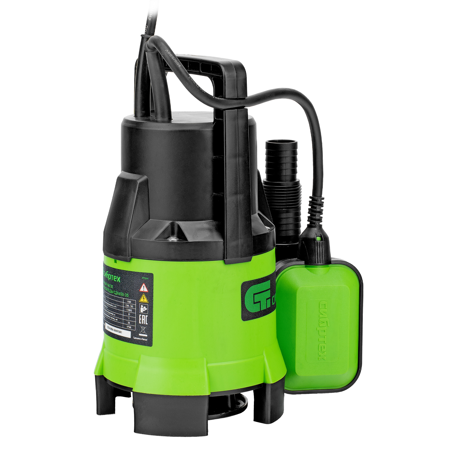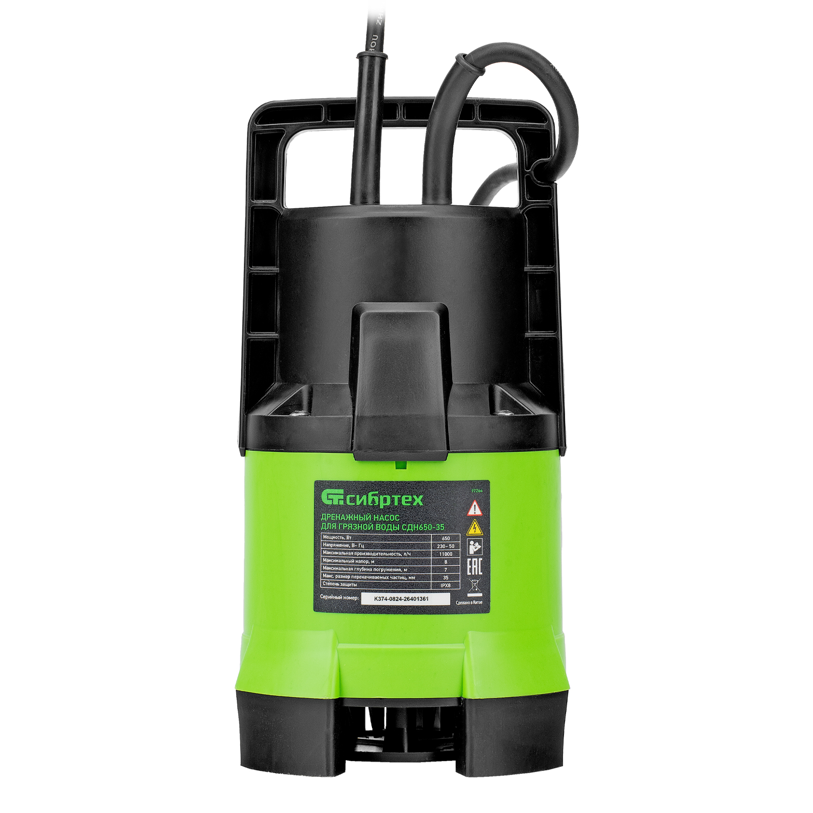 Дренажный насос Сибртех СДН650-35 97264 мощностью 650 Вт и производительностью 11000 л/ч обеспечивает напор до 8 м и предназначен для перекачивания жидких бытовых отходов и сточных вод, содержащей плавающие твердые включения размером до 35 мм. Насос питается от однофазной сети с напряжением 230 В, поэтому подходит для применения в частных домах, дачных коттеджах и на небольших строительных объектах