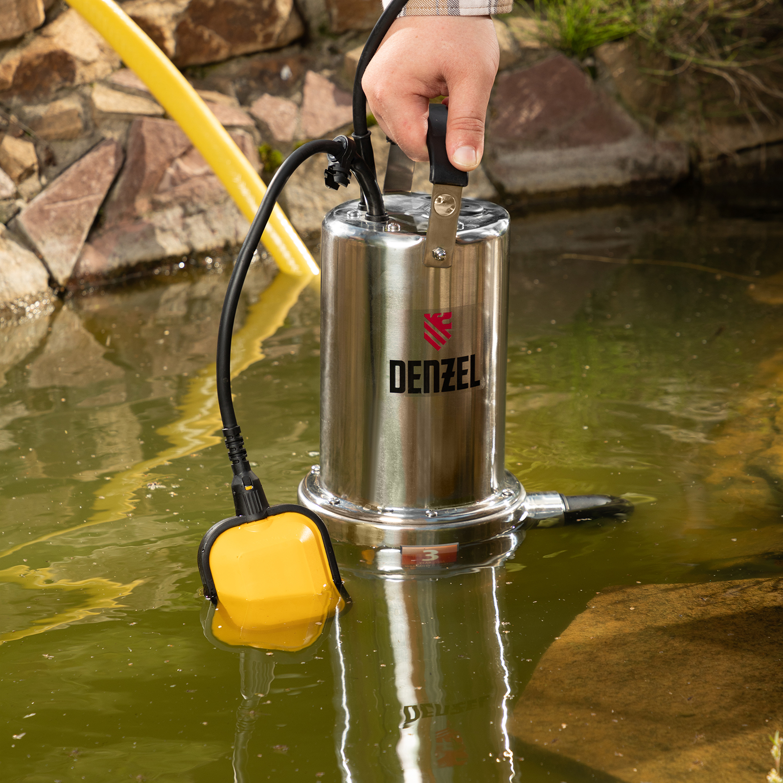 - Длина кабеля 10 м — устройство можно погружать на большую глубину и подключать к розетке без удлинителя.