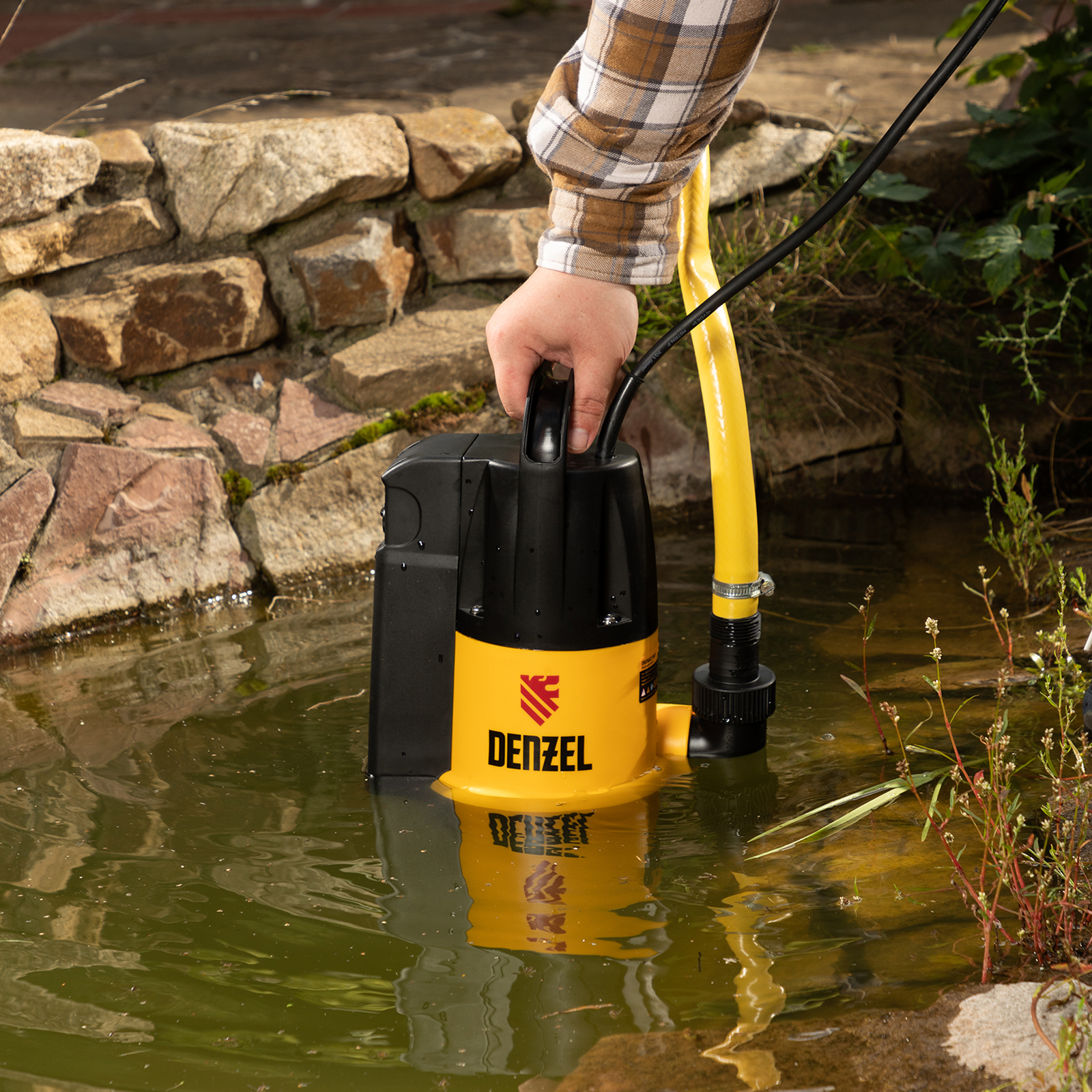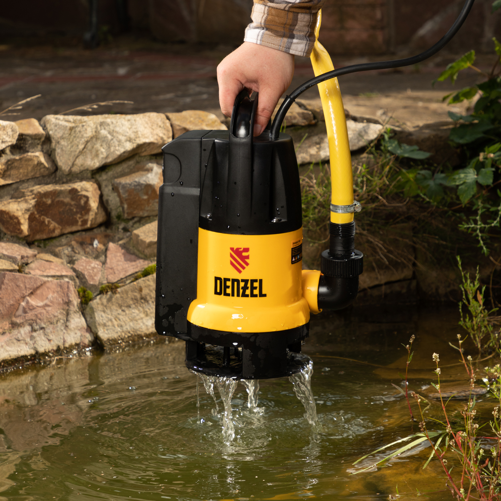 Дренажный насос Denzel DP800A 97219 мощностью 800 Вт и производительностью 13000 л/ч обеспечивает высоту подъема 5 м и подходит для откачки грязной воды с включениями диаметром до 35 мм из резервуаров, подвалов, погребов, канав. Используется также для подачи чистой воды из колодцев и организации систем полива.