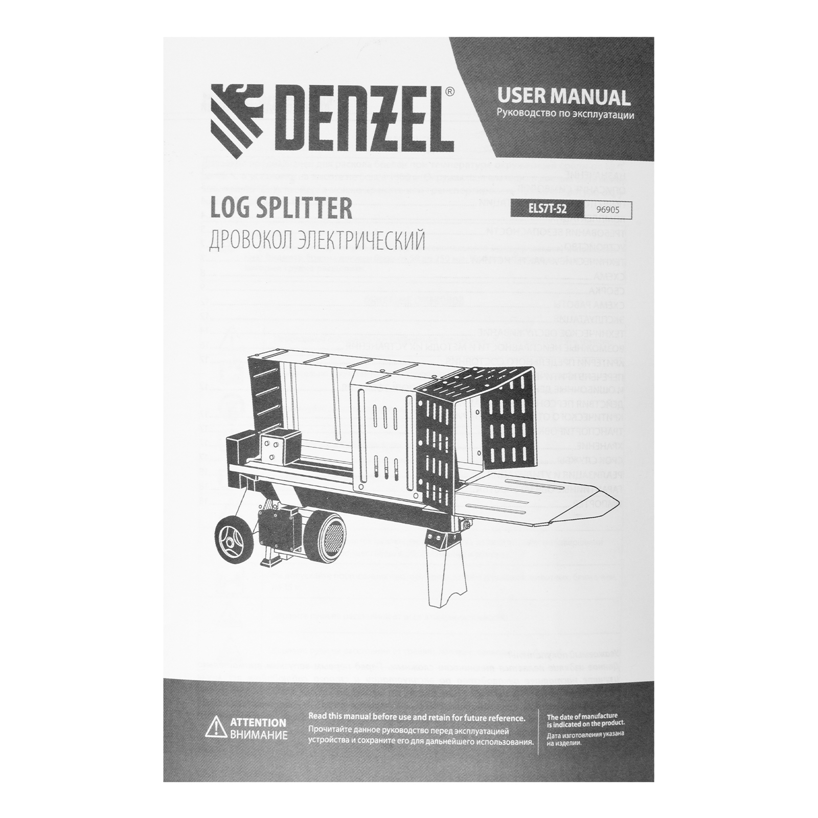 Дровокол электрический ELS7T-52, 2300 Вт, сила раскола 7т, макс. размеры полена D250 x 520 мм Denzel в Челябинске