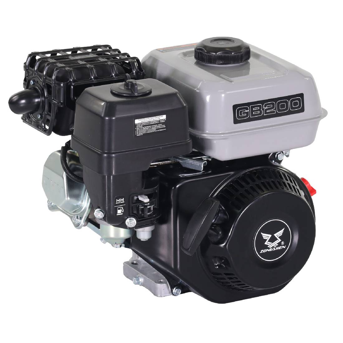 Бензиновый двигатель Zongshen GB 200 (S-Тип) с рабочим объемом 196 см3 (6,5 л.с.). Двигатель Zongshen GB 200 (S-Тип) используется для установки на культиваторах, мотопомпах и тд. Этот двигатель является идеальной заменой для 2-х тактного двигателя на различном оборудовании, имеет легкий запуск и низкий уровень шума, высокое качество контсрукционных материалов и компонентов, низкий расход топлива и масла. Двигатель оснащается колодками центробежного сцепления. Двигатель оснащен баком 3,6 литра. А также датчиком уровня масла, который размыкает цепь зажигания при падении уровня масла.