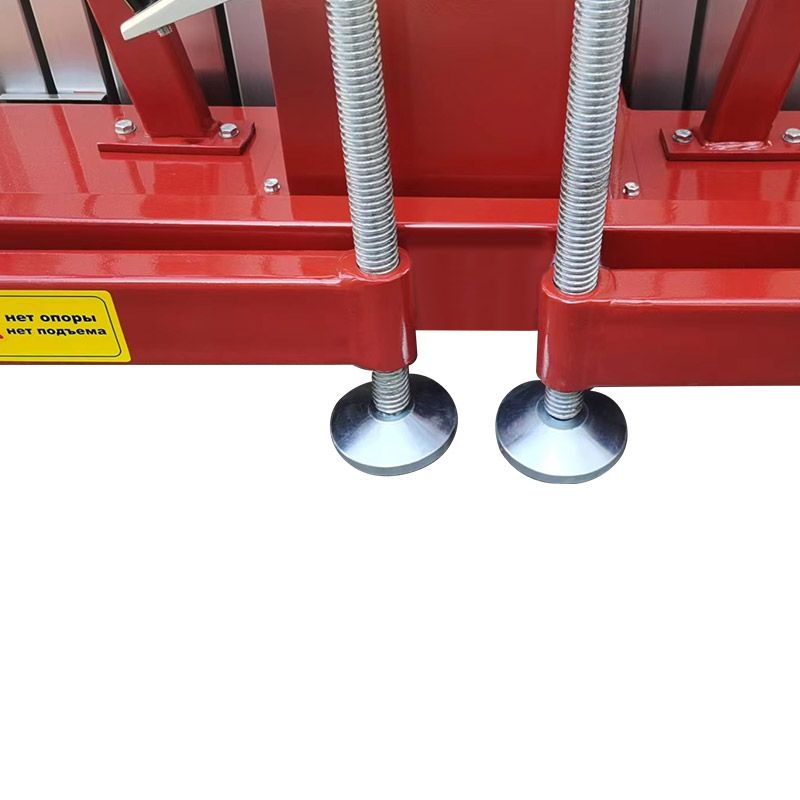 Спиртовой уровень поможет установить подъемник строго вертикально, выдвижные опоры (аутригеры) обеспечат устойчивость даже на неровной поверхности. Скоба для страховочного троса — дополнительная защита для работников.