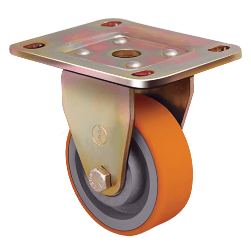 Данное большегрузное колесо подходит для установки на платформенные тележки, передвижное большегрузное оборудование. Кронштейн в модели неповоротный, для крепления предусмотрена платформа размером 115x140 мм. Материал изготовления кронштейна — оцинкованная сталь, обода — чугун. Прочная полиуретановая шинка устойчива к истиранию. Рабочий температурный диапазон — от -20 до +70 °С.