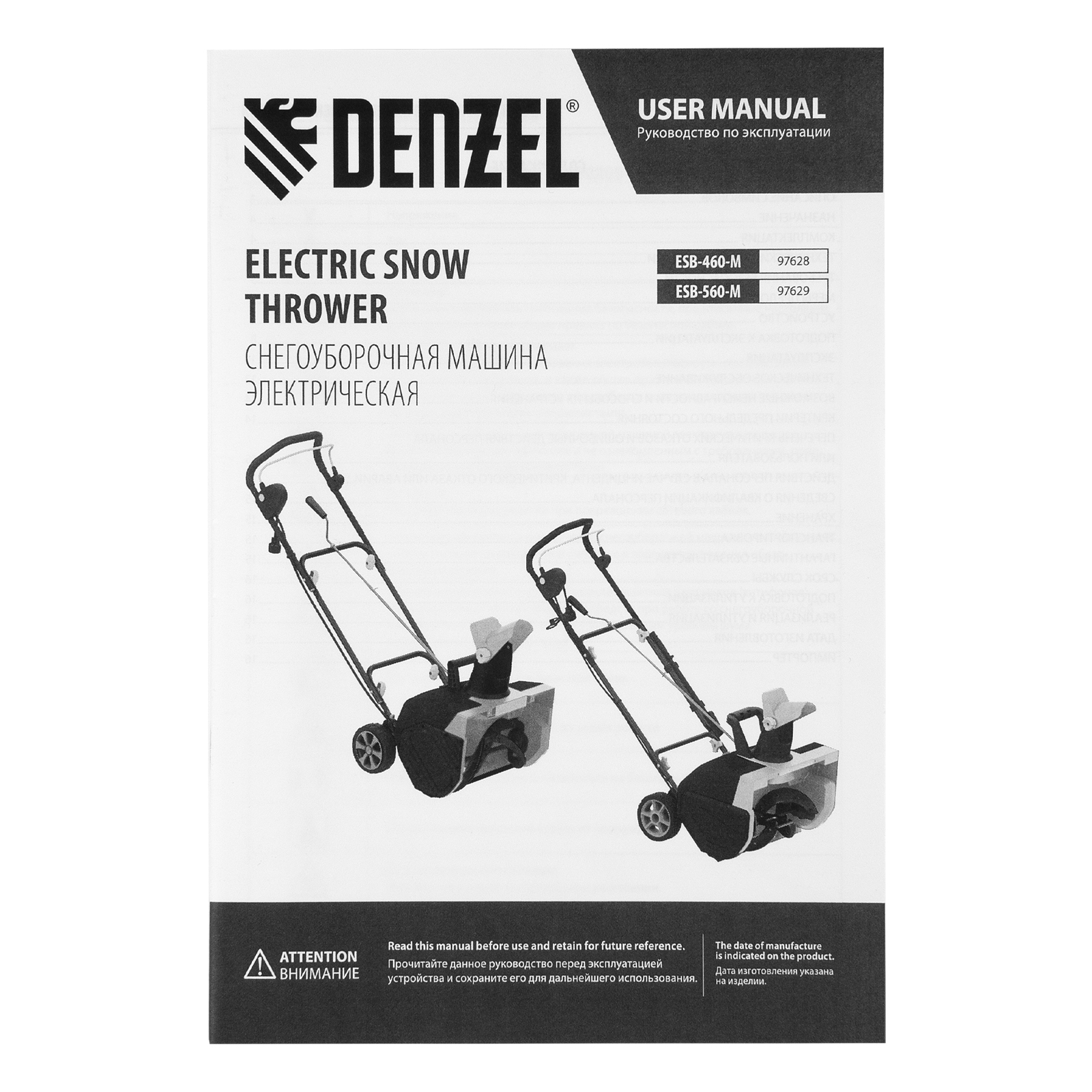 Электрическая снегоуборочная машина ESB-560-M, 2,5 кВт, металлический шнек, LED фара Denzel в Челябинске