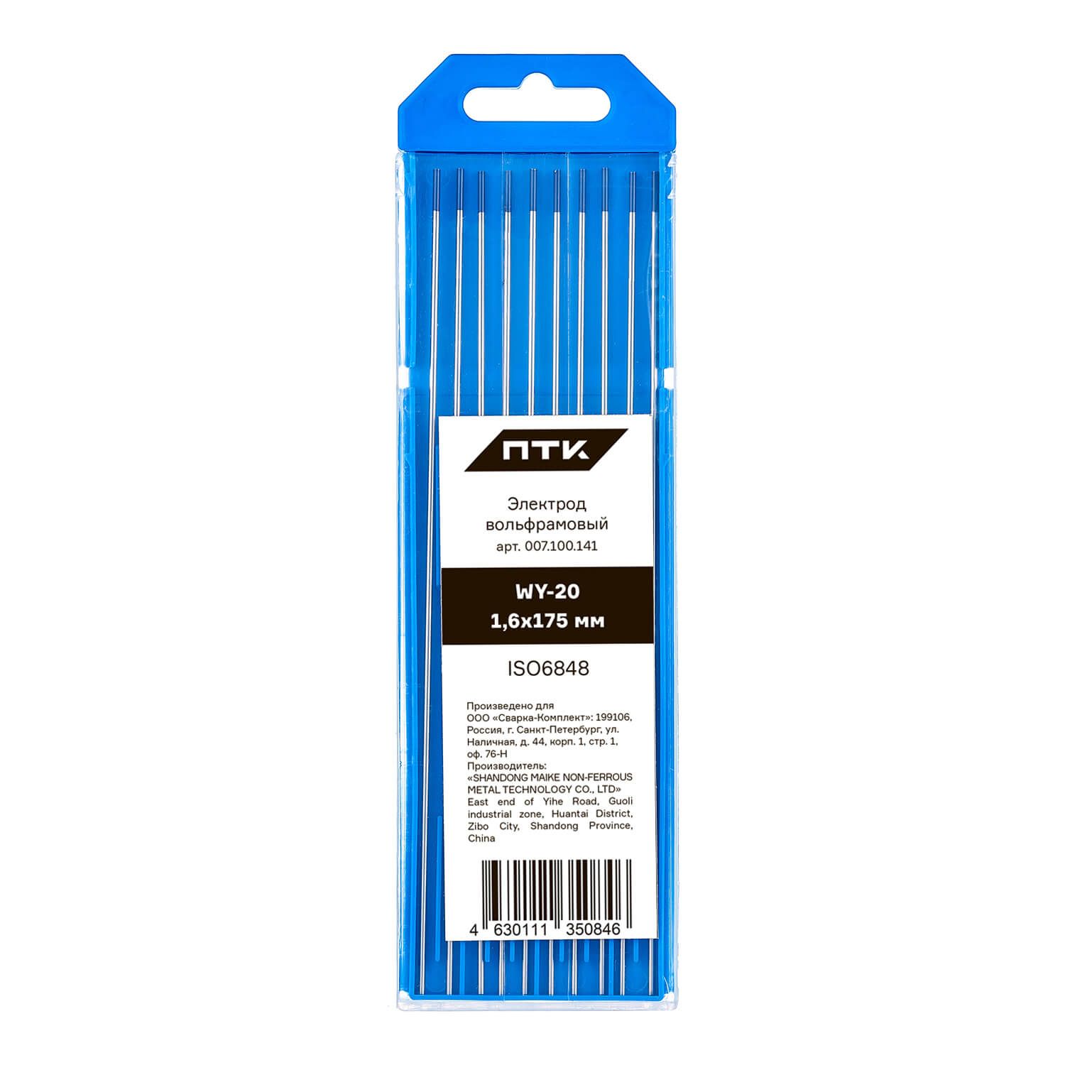 Диаметр электрода 1,6 мм, длина электрода 175 мм. Вольфрам имеет синий цветовой код. Поставляется в пластиковом пенале по 10 штук. В карточке с товаром указана цена за 1 вольфрамовый электрод.