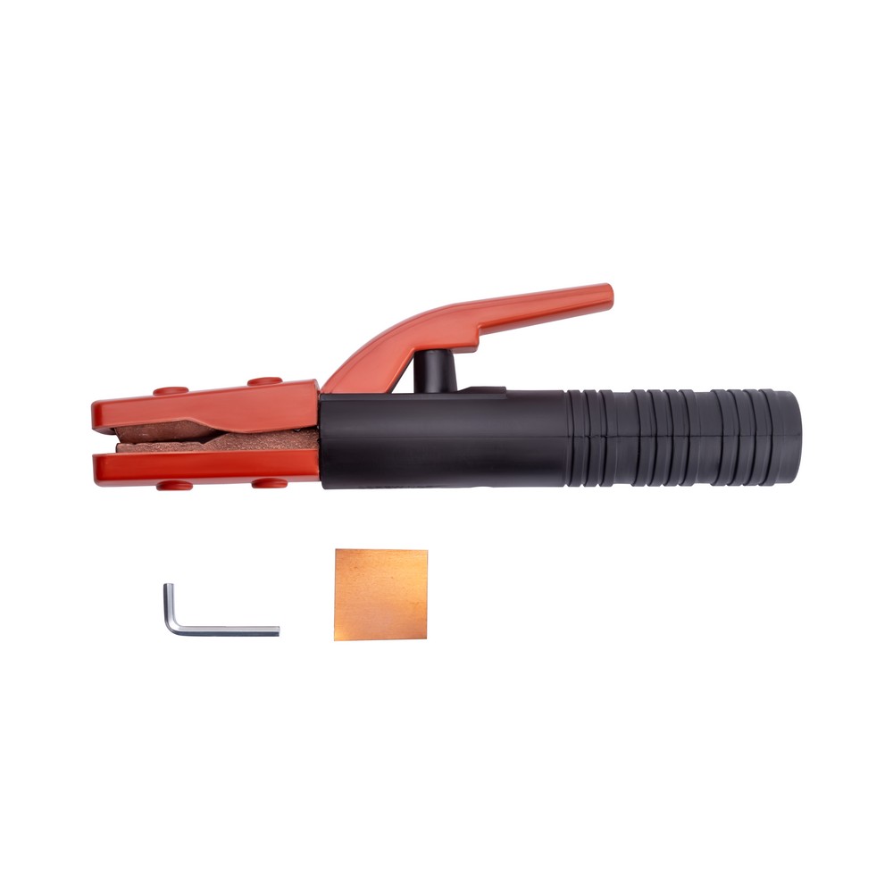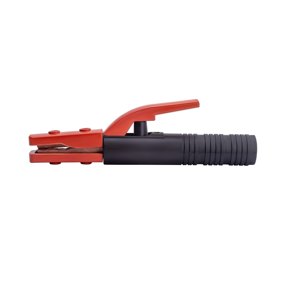 Электрододержатель EHM-500A американского типа (основа зубчатых держателей прочный токопроводящий сплав) сделан из износостойких, термически стойких и прочных материалов. Область обхвата держателя ладонью сварщика имеет надёжную электроизоляцию. Покрытый электрод, имеющий основное, рутиловое или целлюлозное покрытие, надёжно фиксируется при помощи мощного пружинного механизма. Механизм держателя позволяет зафиксировать сварочный электрод под углами 45°, 90°, 135°, 180°. К электрододержателю подсоединяют медный сварочной провод сечением 50 мм, алюминиевый омеднённый кабель (CCA) диаметром 70 мм. Сила фиксации электрода составляет до 25 кг/см².ЭРГОНОМИЧНОСТЬ: Эргономичная противоскользящая рукоятка хорошо лежит в руке. Термостойкий пластик обеспечивает безопасность во время рабочего процесса.ПРЕИМУЩЕСТВА:Простая, удобная и надёжная конструкцияМощный зажимной механизмНадёжная фиксация сварочного кабеляВозможность фиксации электрода в разных пространственных положениях