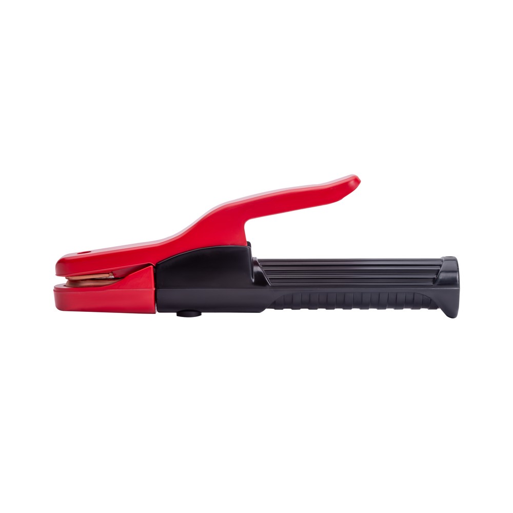 Электрододержатель Kvazarrus EH-500A (основа зубчатых держателей прочный токопроводящий сплав) сделан из износостойких, термически стойких и прочных материалов. Область обхвата держателя ладонью сварщика имеет надёжную электроизоляцию. Покрытый электрод, имеющий основное, рутиловое или целлюлозное покрытие, надёжно фиксируется при помощи мощного пружинного механизма. Механизм держателя позволяет зафиксировать сварочный электрод под углами 45°, 90°, 135°, 180°. К электрододержателю подсоединяют медный сварочной провод сечением 50 мм, алюминиевый омеднённый кабель (CCA) диаметром 70 мм. Сила фиксации электрода составляет до 25 кг/см².ЭРГОНОМИЧНОСТЬ: Эргономичная противоскользящая рукоятка хорошо лежит в руке. Термостойкий пластик обеспечивает безопасность во время рабочего процесса.ПРЕИМУЩЕСТВА:Простая, удобная и надёжная конструкцияМощный зажимной механизмНадёжная фиксация сварочного кабеляВозможность фиксации электрода в разных пространственных положениях
