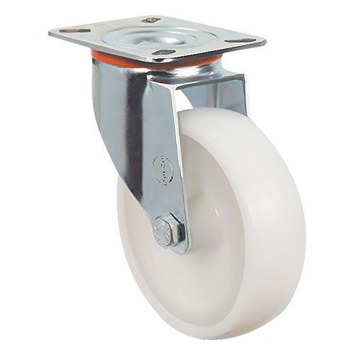 Колесная опора EMES EM01 ZKZ 65 устанавливается на платформенные тележки для пищевой промышленности, передвижное медицинское оборудование и технику. Нейлоновый обод хорошо распределяет нагрузку. Поворотный кронштейн изготовлен из оцинкованной стали. Максимальная грузоподъемность модели составляет 120 кг. Рабочий температурный диапазон — от -20 до +70 °С.
