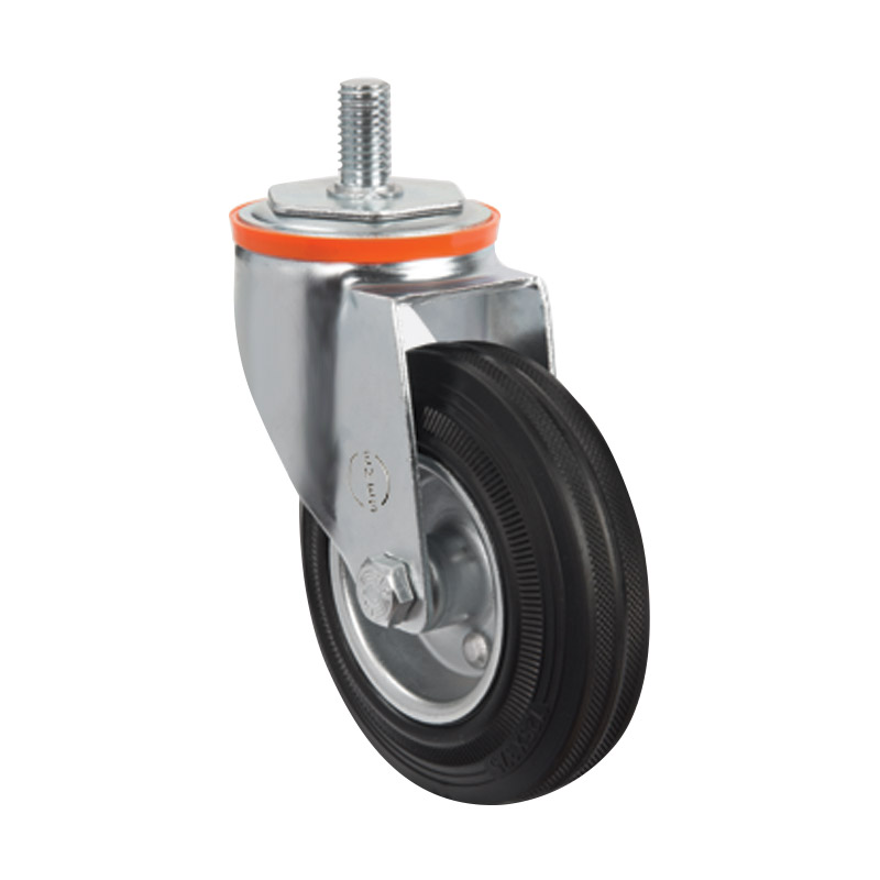 Грузоподъемность данного промышленного колеса составляет 60 кг, диаметр — 80 мм. Контактный слой изготовлен из литой черной резины, обод и кронштейн — из оцинкованной стали. Роликовый подшипник в оси обладает высокой стойкостью к радиальным нагрузкам. Модель подходит для установки на различное складское и строительное оборудование, контейнеры ТБО, может использоваться на поверхностях с уклонами и неровностями, во влажной среде.
