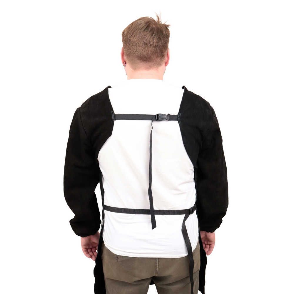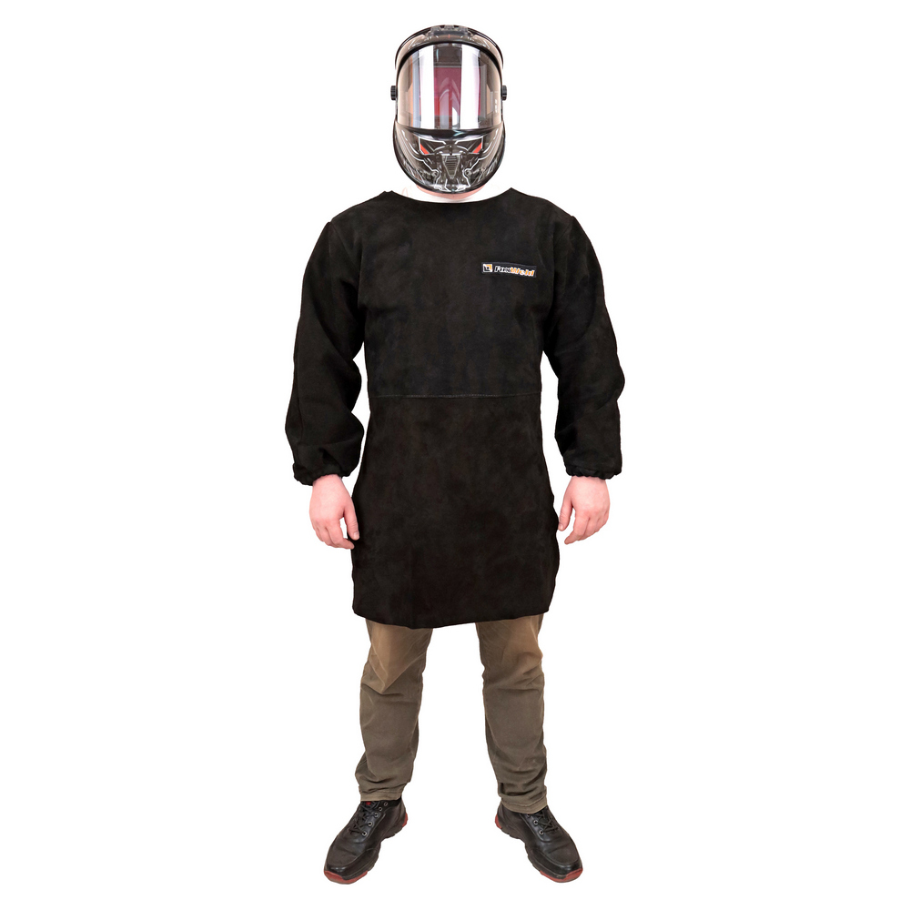 Фартук спилковый с рукавами изготовлен из высококачественного спилка толщиной 1,2 – 1,4 мм. Предназначен для защиты от брызг раскаленного металла, повышенной температуры и механической грязи во время сварки. Фартук выполнен с рукавами и манжетами на резинке. Соединительные швы между фартуком и креплением прошиты огнестойкой нитью. Крепление осуществляется за счет стропы и фастекс.КЕВЛАРОВЫЕ НИТИ: Швы и стропы прошиты прочной огнестойкой нитью Kevlar, что придаёт дополнительную прочность фартуку и защищает тело при сварочных работах.ПРЕИМУЩЕСТВА:Машинная вышивка логотипаИзготовлен из высококачественного спилка толщиной 1,2 – 1,4 ммНа любой сезонМатериал: натуральный спилокВид застежки: фастексФабричное производство
