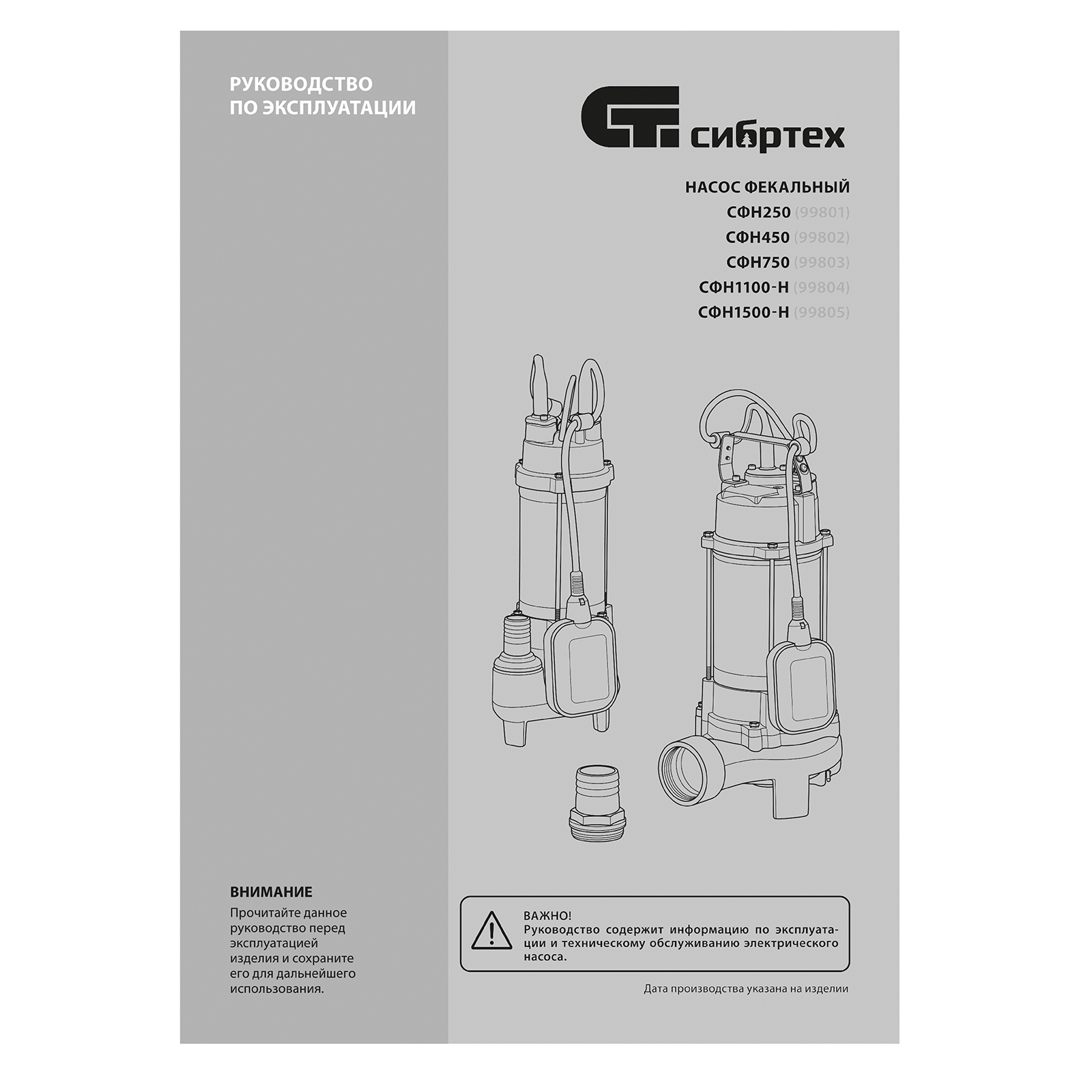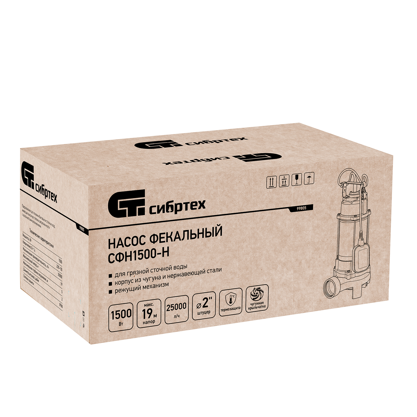 Фекальный насос СФН1500-Н, 1500 Вт, напор 19 м, 25000 л/ч, нож Сибртех в Челябинске