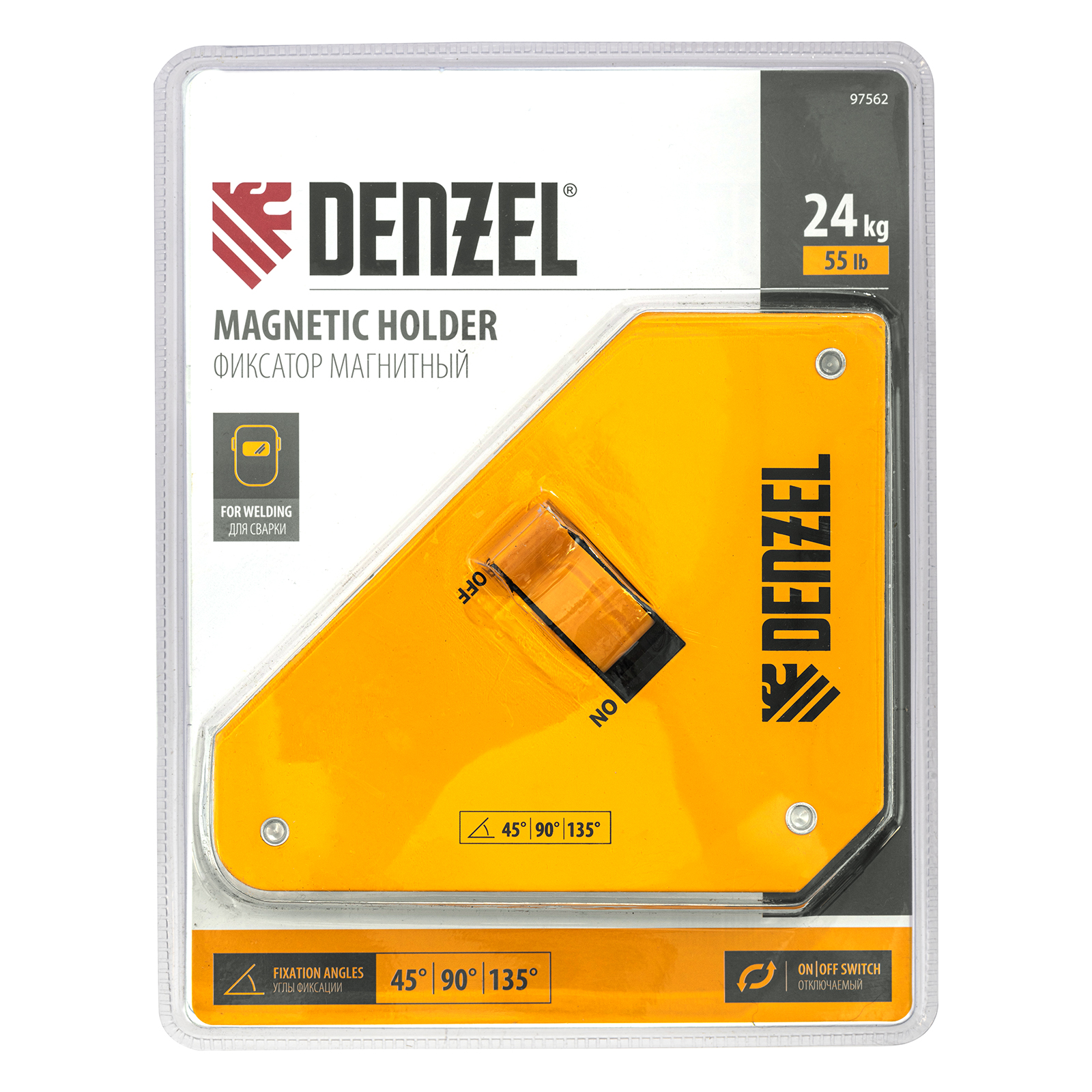 Фиксатор магнитный отключаемый для сварочных работ усилие 55 LB, 45х90 град. Denzel в Челябинске