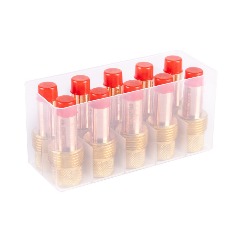 Держатель (корпус) используется для крепления цанги в сопле горелки. При помощи данного элемента горелки TIG производится формирование осевого усилия на цангу, в результате которого производится зажим вольфрамового электрода.