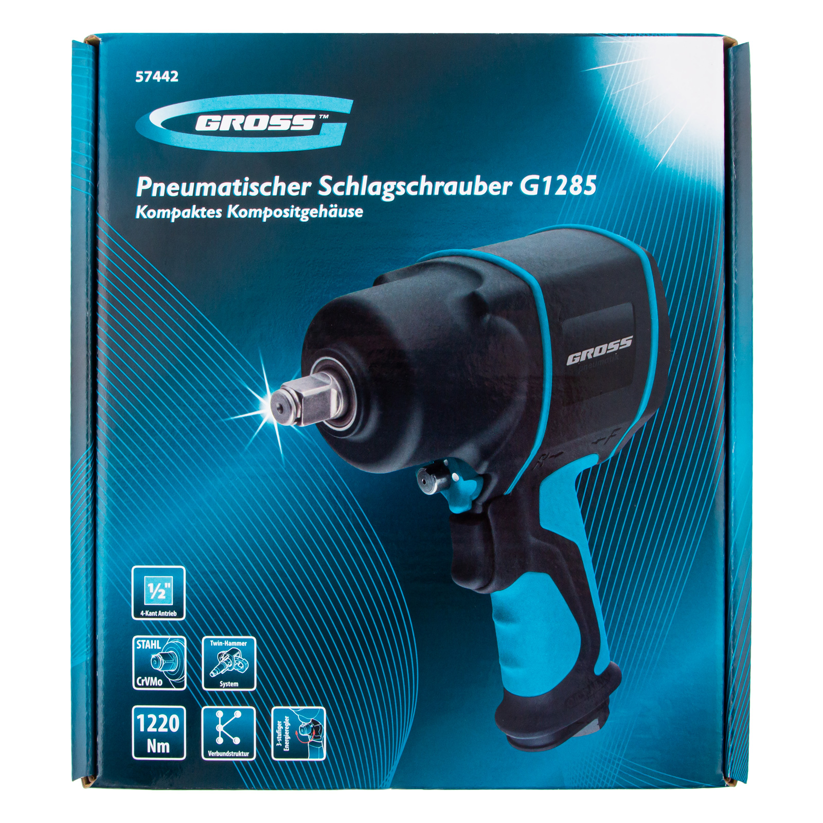 Гайковерт пневматический ударный G1285, 1/2, Twin Hammer, 1220Нм, 6500 об/мин, композитный Gross в Челябинске