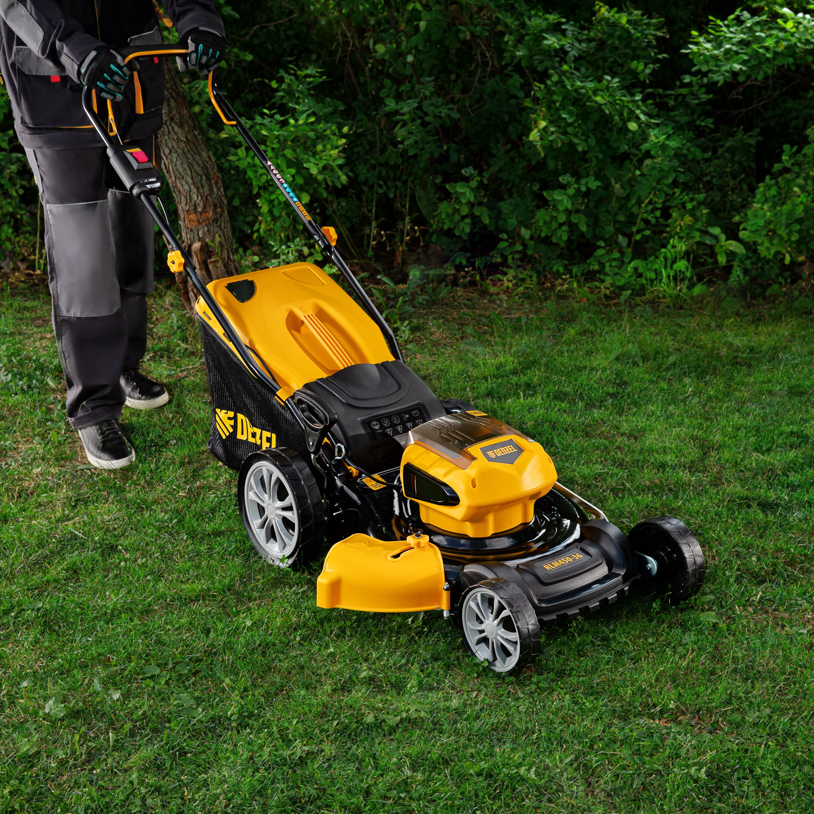 Газонокосилка аккумуляторная бесщеточная RLM450-36, Li-ion, 36 В, 4 Ач, 450 мм, травосборник 40 л Denzel в Челябинске
