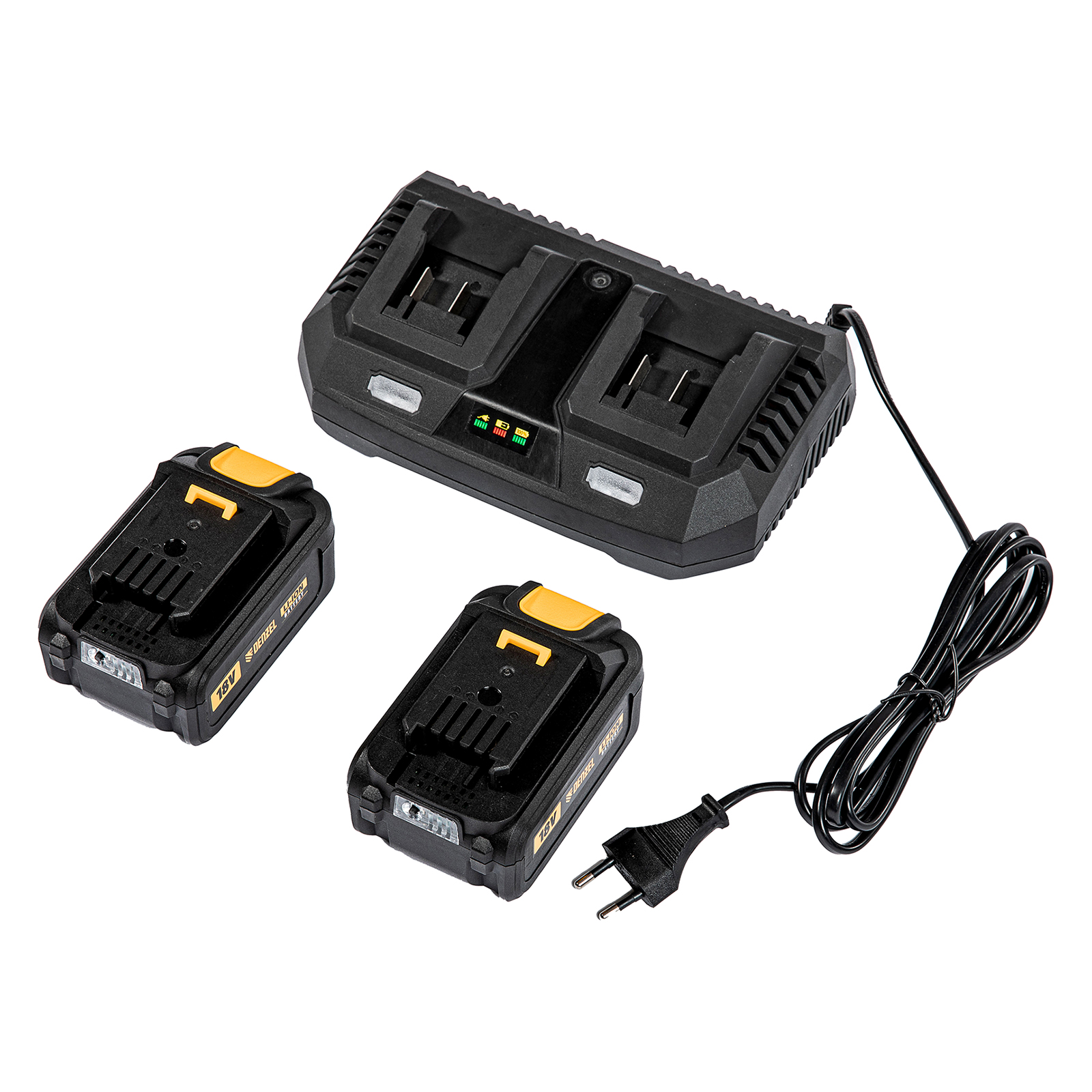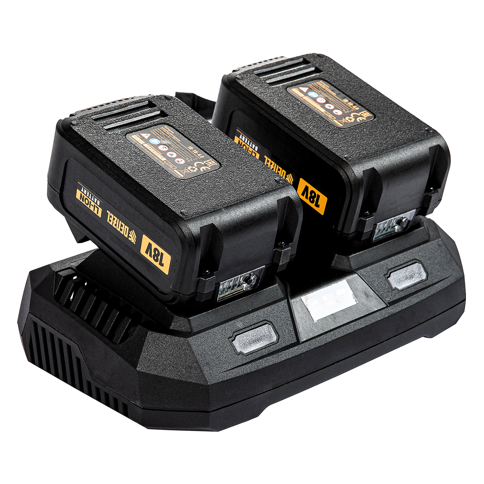 - Универсальность — аккумуляторные батареи Li-ion емкостью 4 Ач совместимы с любым инструментом из модельного ряда единой платформы Denzel Battery System 18V.