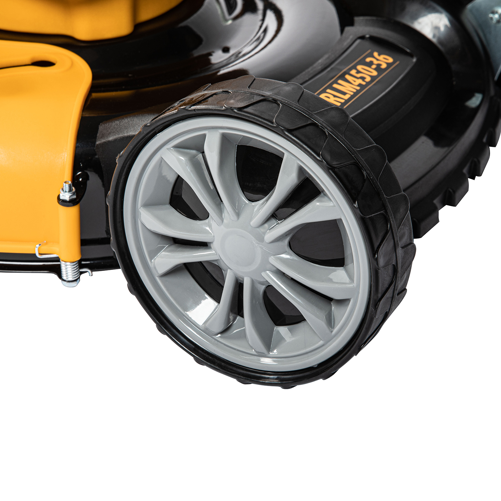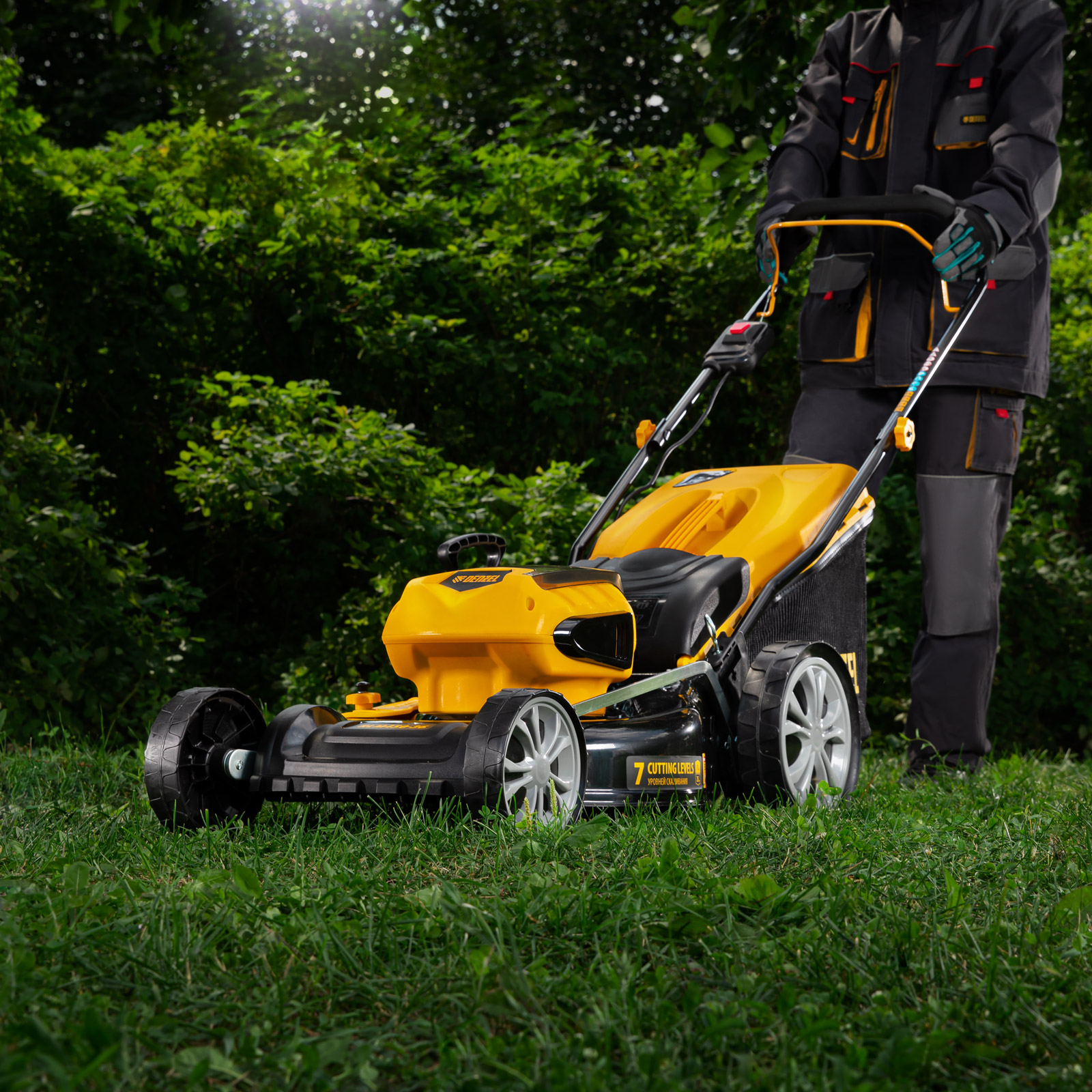 - Комфортная работа — уровень шума от работающей газонокосилки не превышает 96 дБ.
