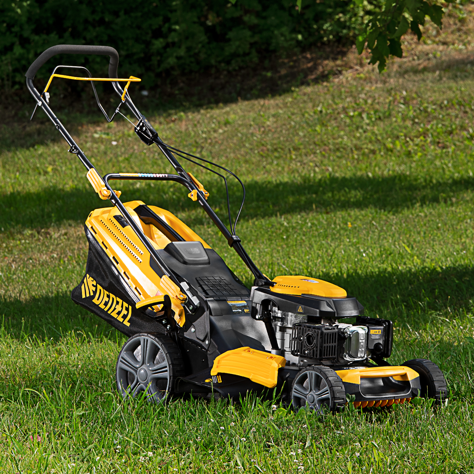 Бензиновая газонокосилка Denzel GLD-520SP 58804 с приводом оснащена двигателем объемом 196 см3, травосборником на 60 л и обеспечивает ширину скашивания 52 см за один проход. Предназначена для скашивания газонной травы на приусадебном участке. Мощности изделия в 6,5 л. с. достаточно для облагораживания даже поросшей бурьяном территории или участков со стеблями. Ширина скашивания в 52 см позволяет эффективно обработать 3700 м2 всего за 2 часа.