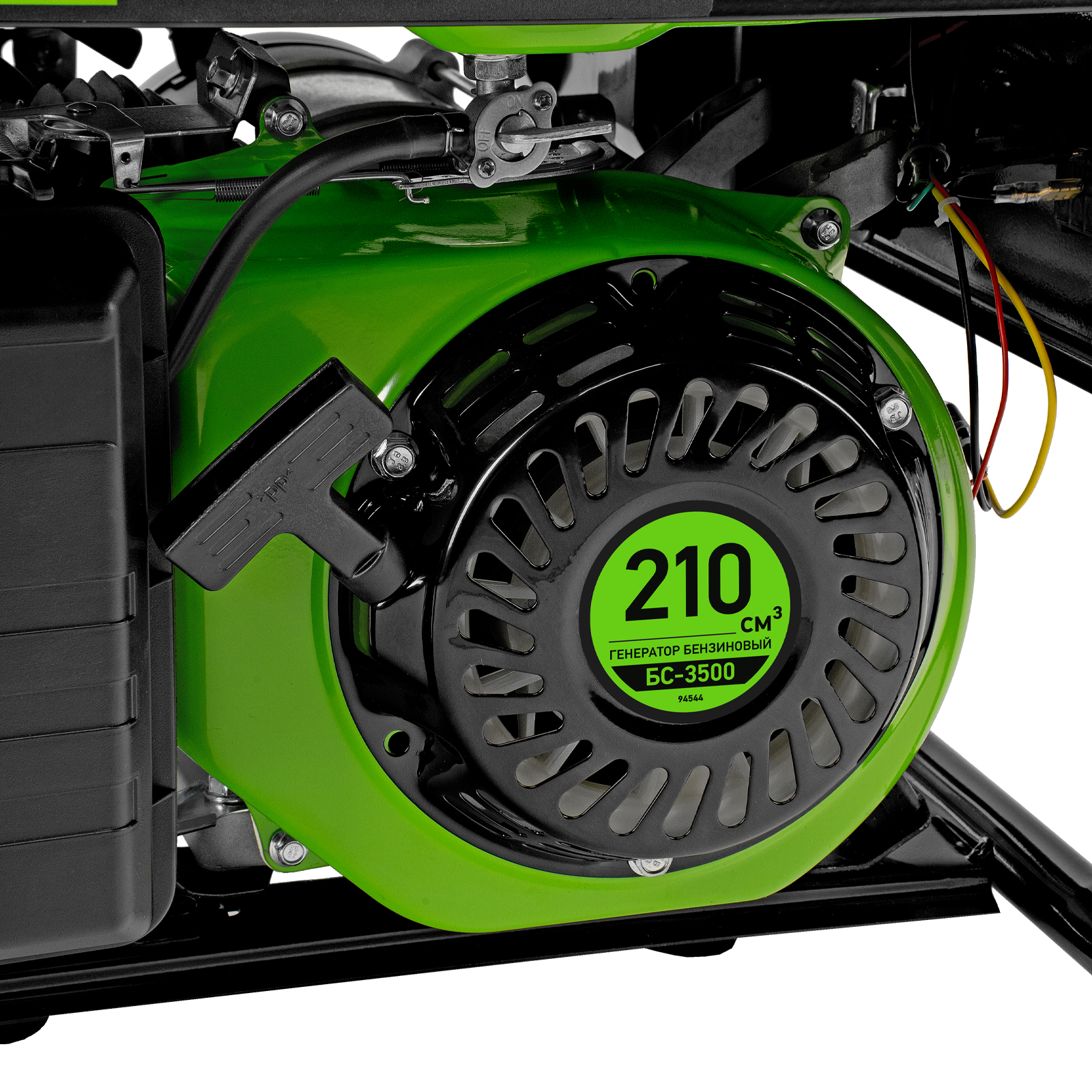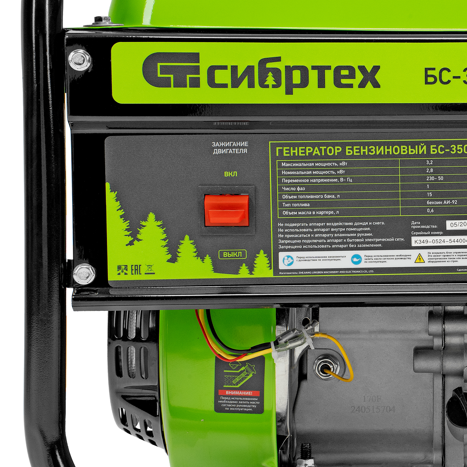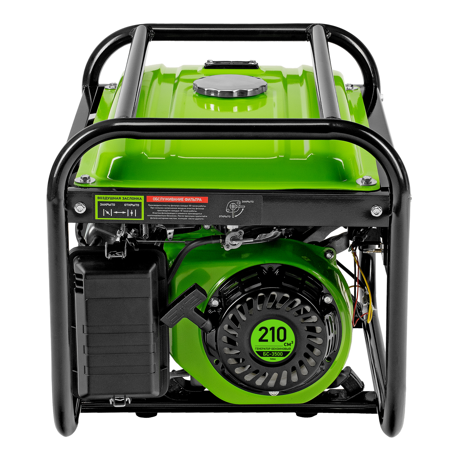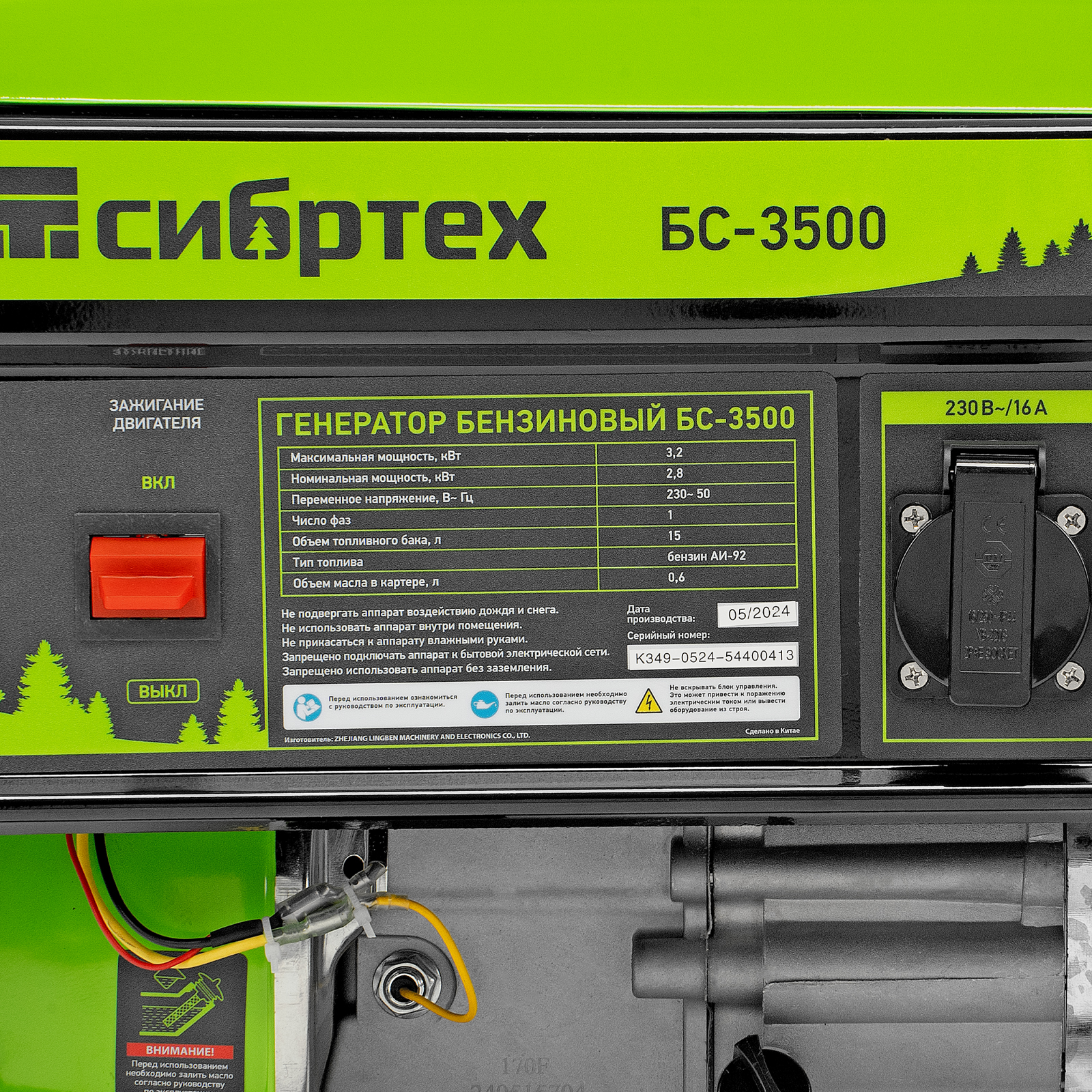 Бензиновый генератор Сибртех БС-3500 94544 на 230 В, максимальной мощностью 3,2 кВт, с 4-тактным двигателем, 15-литровым баком и ручным стартером, предназначен для электроснабжения дачи, кемпинга, небольшого магазина, гаража или строительной площадки. Весит всего 38,8 кг, что облегчает транспортировку, а значит, его можно брать на выездные работы или на природу. Выдаваемого напряжения 3,2 кВт хватает для одновременного подключения 4 ламп накаливания, холодильника, телевизора, электрочайника.