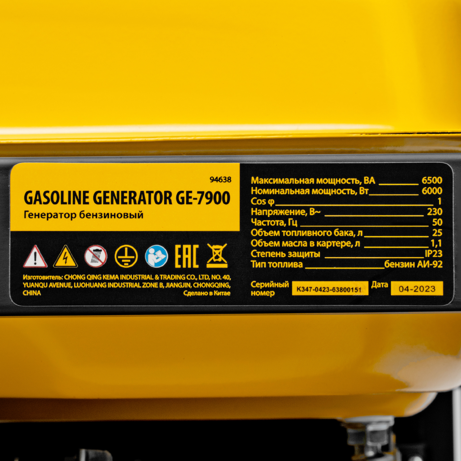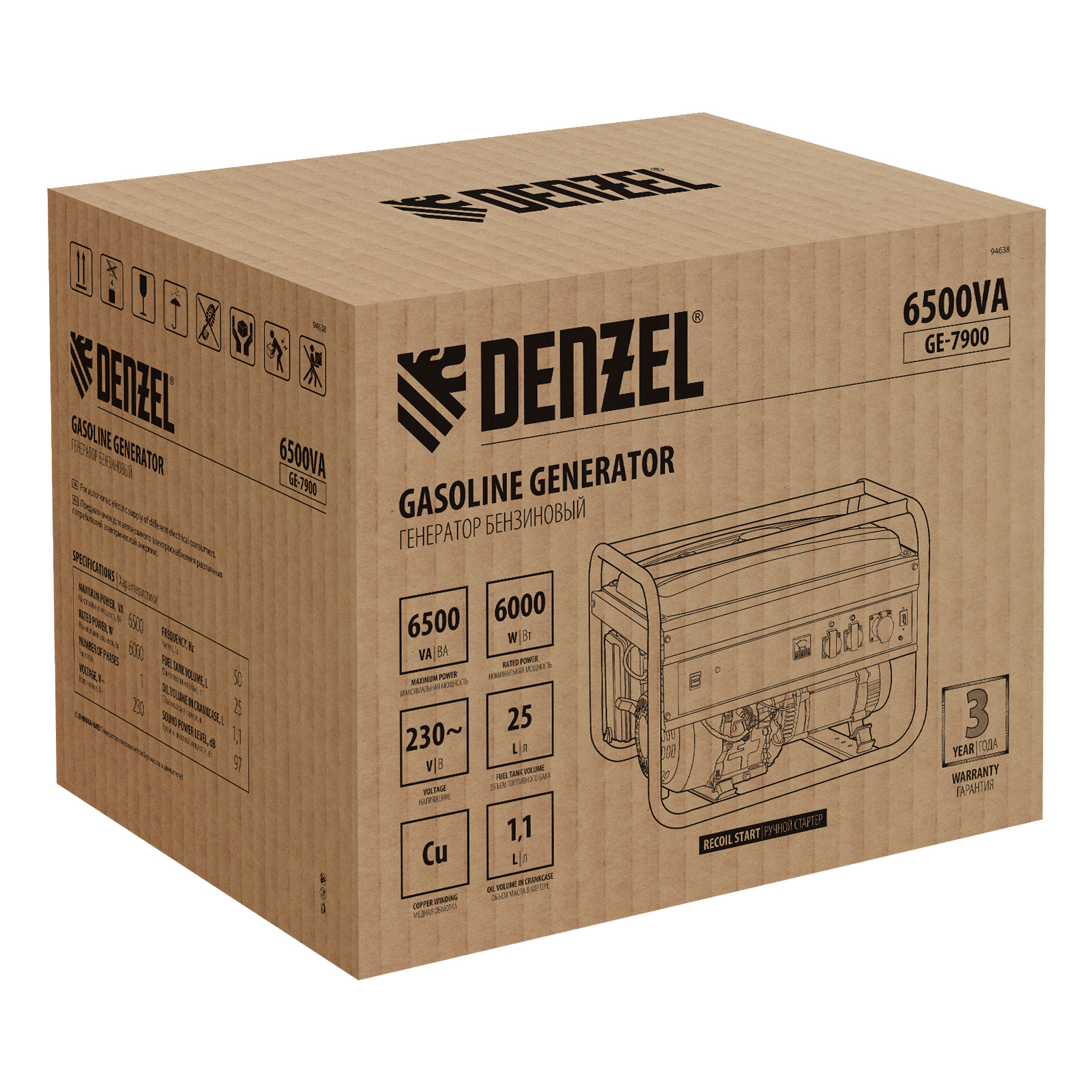 Генератор бензиновый GE 7900, 6.5 кВт, 220 В/50 Гц, 25 л, ручной пуск Denzel в Челябинске