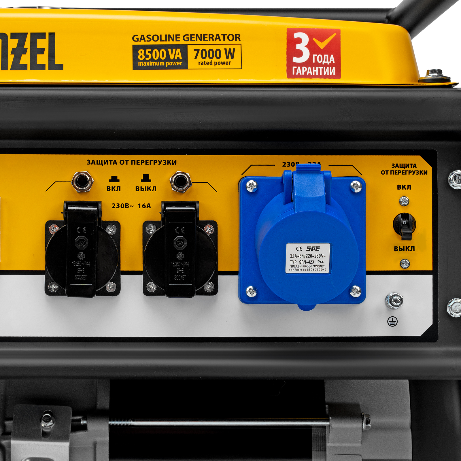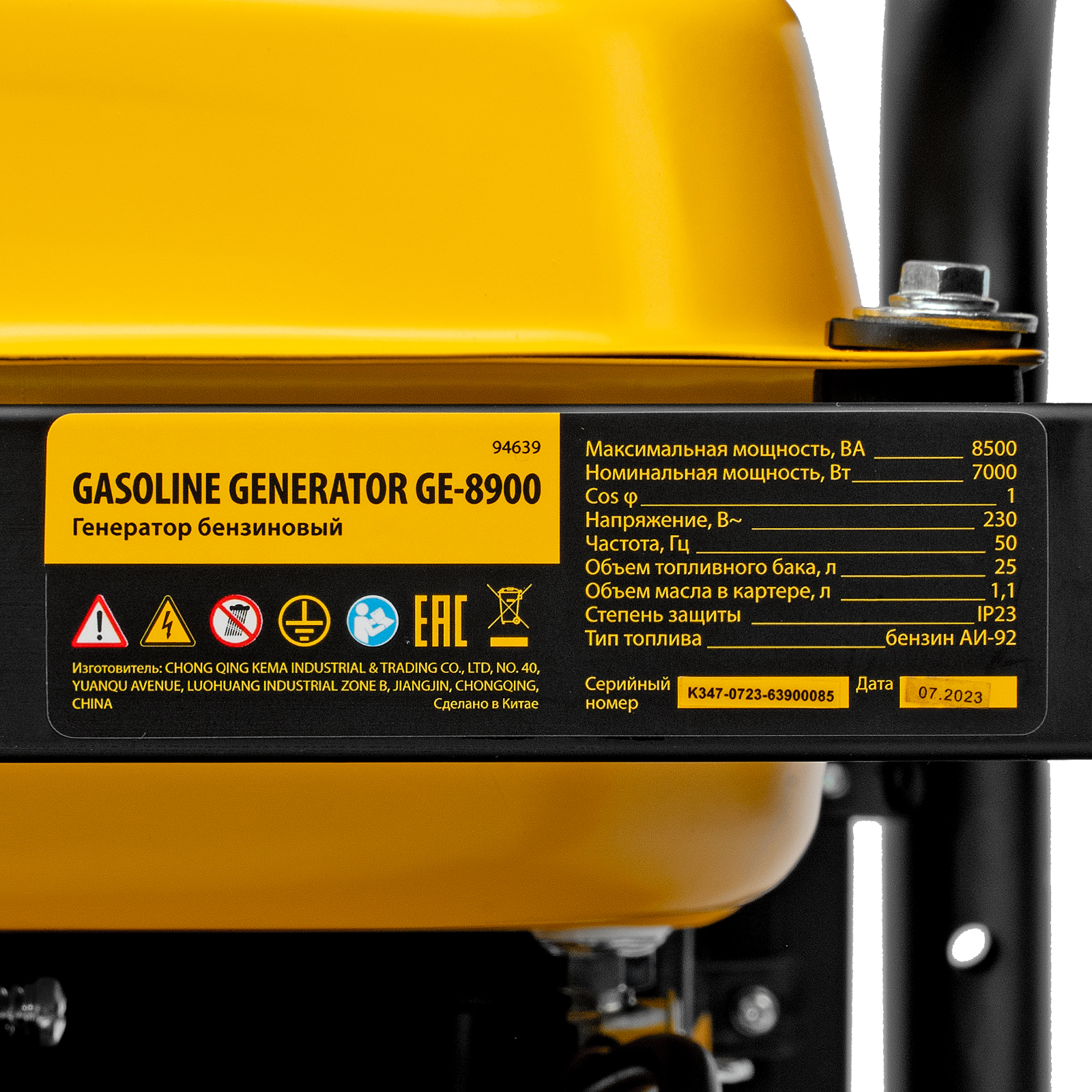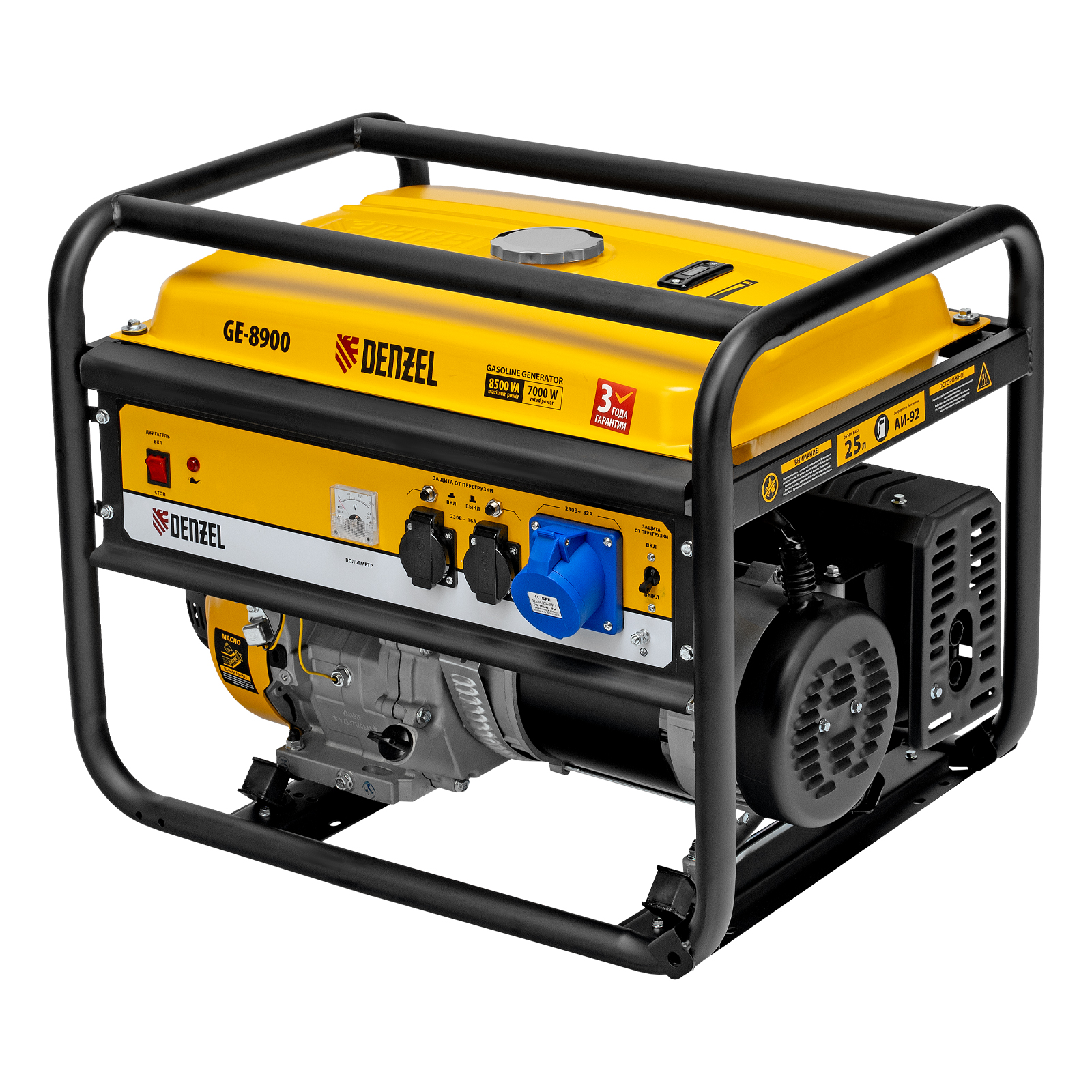 Генератор бензиновый GE 8900, 8.5 кВт, 220 В/50 Гц, 25 л, ручной старт Denzel в Челябинске