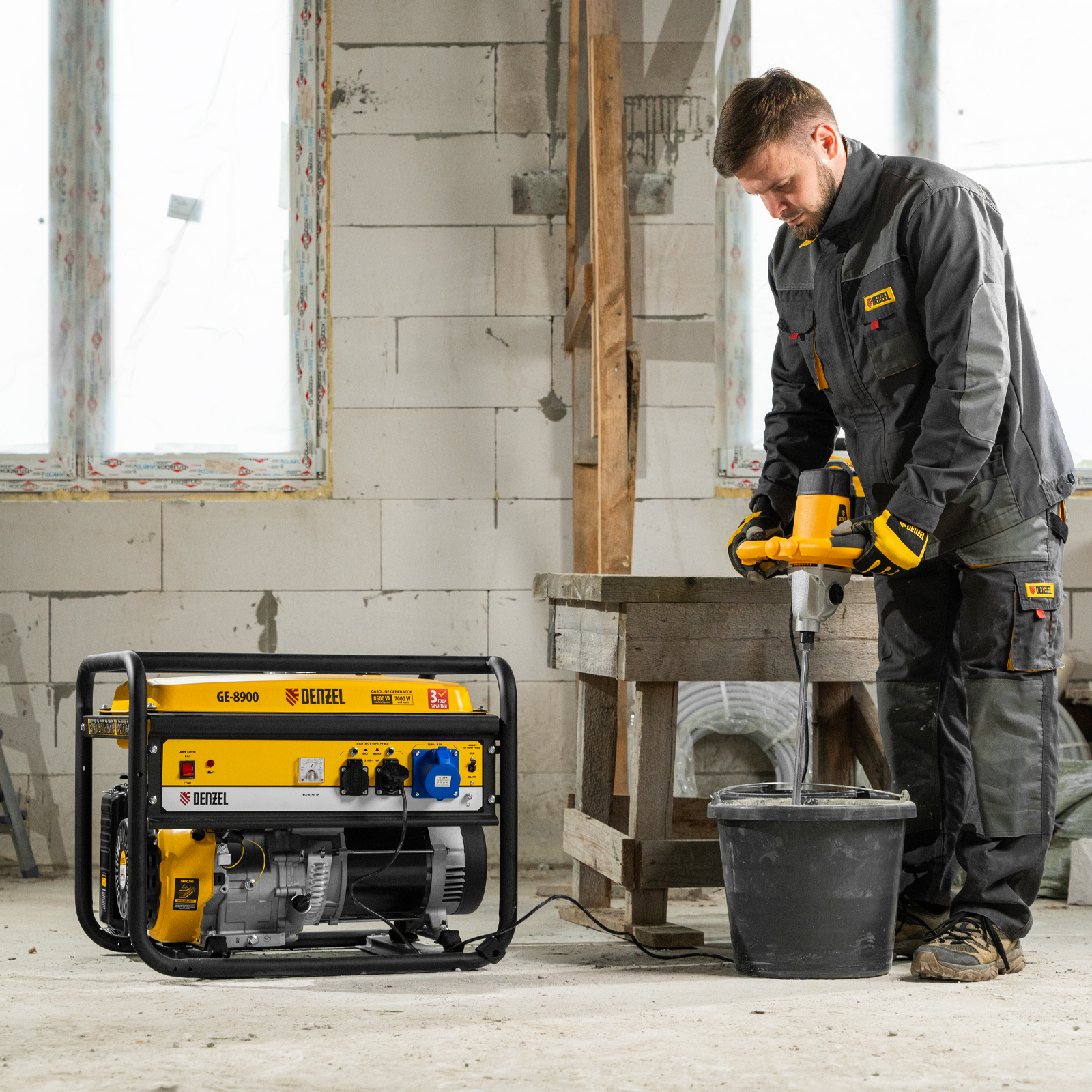 Бензиновый генератор Denzel GE 8900 94639, 220 В / 50 Гц, с баком на 25 л и ручным стартом, вырабатывает 8,5 кВт и способен обеспечить электричеством большой загородный дом, магазин или строительную площадку. Можно запитать сразу несколько потребителей, например, обогреватель или кондиционер, насос и электроинструменты. Силовая розетка позволяет подключать оборудование высокой мощности. Полного бака хватает на 7,8 ч работы без дозаправки.